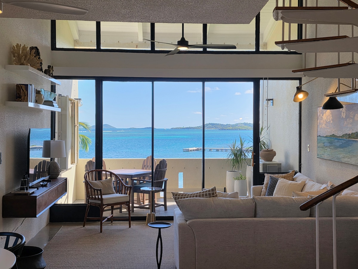NEU! Geräumige 1 Schlafzimmer/2 Badezimmer 1200 Quadratfuß - 2024 KOMPLETT RENOVIERTE VILLA AM MEER in St. Thomas, VI. Diese geräumige Villa verfügt über ein brandneues modernes Interieur, ein geräumiges separates Schlafzimmer, 2 Badezimmer, einen privaten Balkon und alle Annehmlichkeiten! Dieser luxuriöse Rückzugsort liegt am begehrten East End und bietet einen atemberaubenden Blick auf das Meer/die Insel. Die Villa wurde mit Blick auf moderne Eleganz und geräumigen Komfort entworfen und bietet direkten Zugang zu drei Pools, zwei Gourmet-Restaurants und einem Privatstrand.