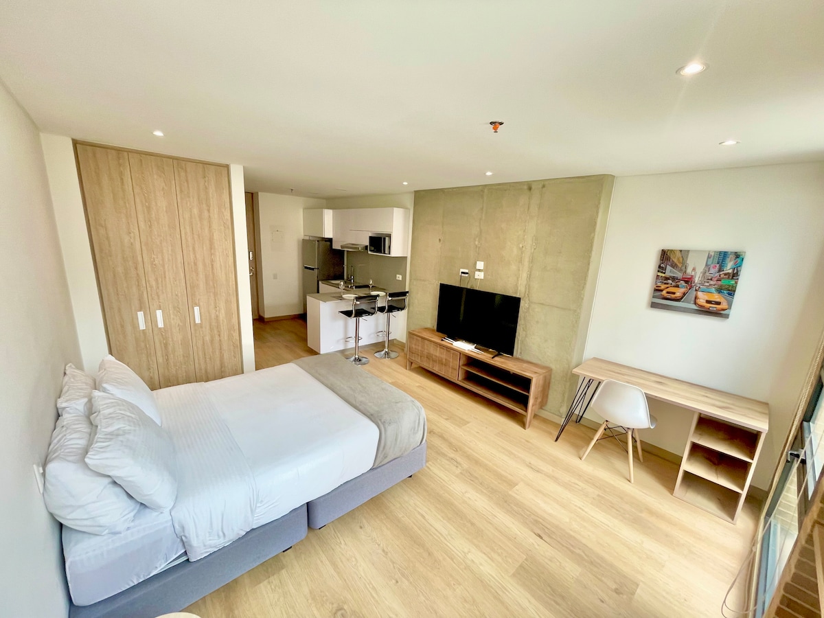 🏙️ Inseratsbeschreibung Erlebe Bogotá von einem modernen Executive-Loft im Herzen von Chicó Norte. Dieser stilvolle Raum wurde für Komfort und Produktivität entworfen und bietet einen Blick auf die Stadt, intelligente Annehmlichkeiten und erstklassigen Zugang zu den dynamischsten Geschäfts- und Freizeitzentren der Stadt, darunter Parque de la 93, Zona T und Museo del Chicó. Egal, ob Sie aus der Ferne arbeiten oder die Hauptstadt erkunden, dieser Ort bietet eine nahtlose Balance zwischen Komfort und Raffinesse.