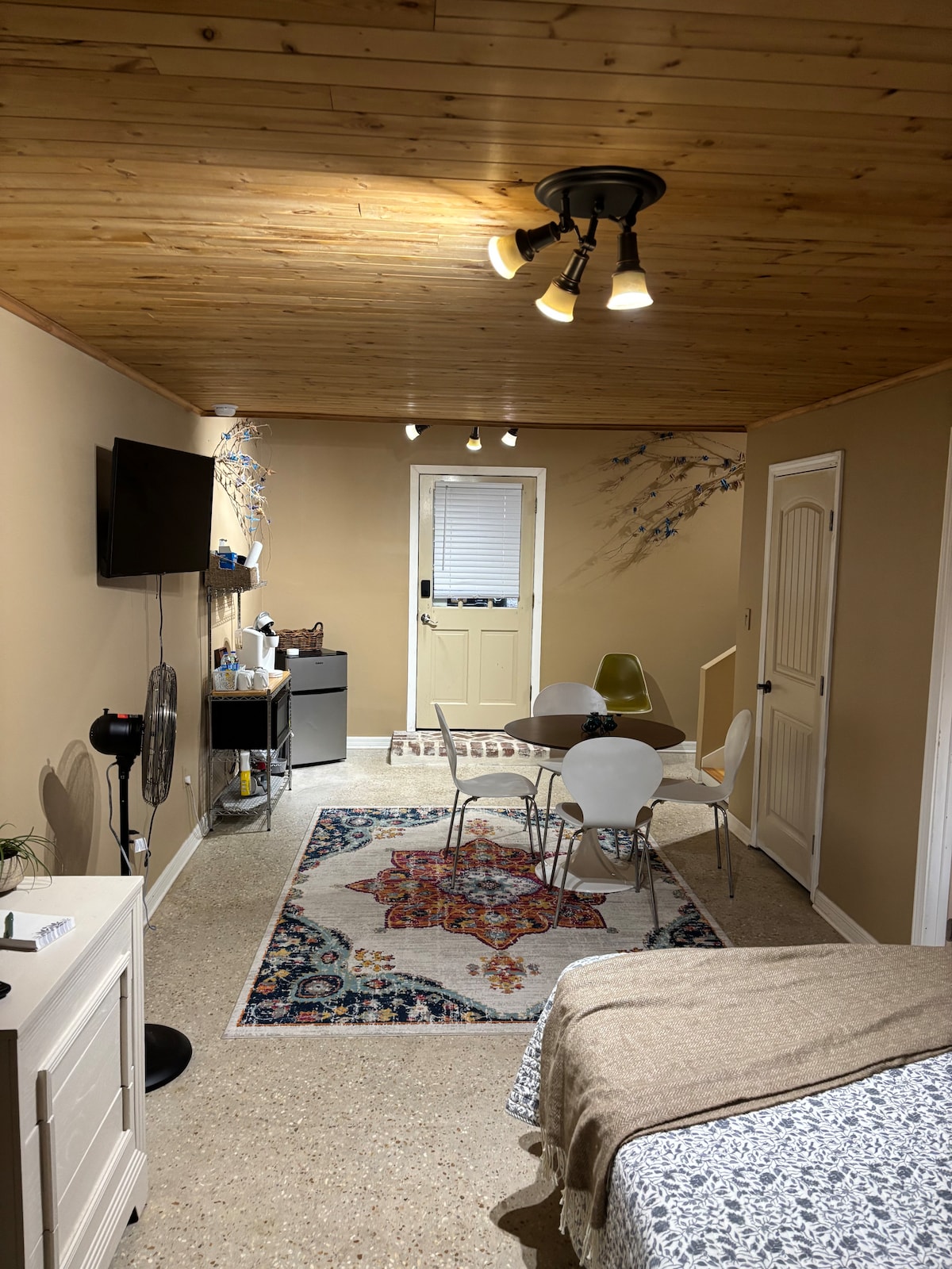 Dies ist eine Gästesuite, die an unser Haus angeschlossen ist. Sie befindet sich in einer ruhigen Gegend. Sie liegt nur 10 Gehminuten von der Baton Rouge Main Public Library und dem Botanischen Garten entfernt. Dieser Raum ist perfekt für maximal 4 Personen, da er mit einem Queensize-Bett und einem Schlafsofa ausgestattet ist. Dieses Airbnb verfügt über einen großen Kühlschrank, eine Küchenzeile mit Mikrowelle, eine Heißluftfritteuse, einen Schmortopf, eine Kaffeemaschine (KEIN Keurig), einen Toaster und einen Waffeleisen, einen Mixer und einen Reiskocher. Parkplätze stehen an der Einfahrt zur Verfügung.