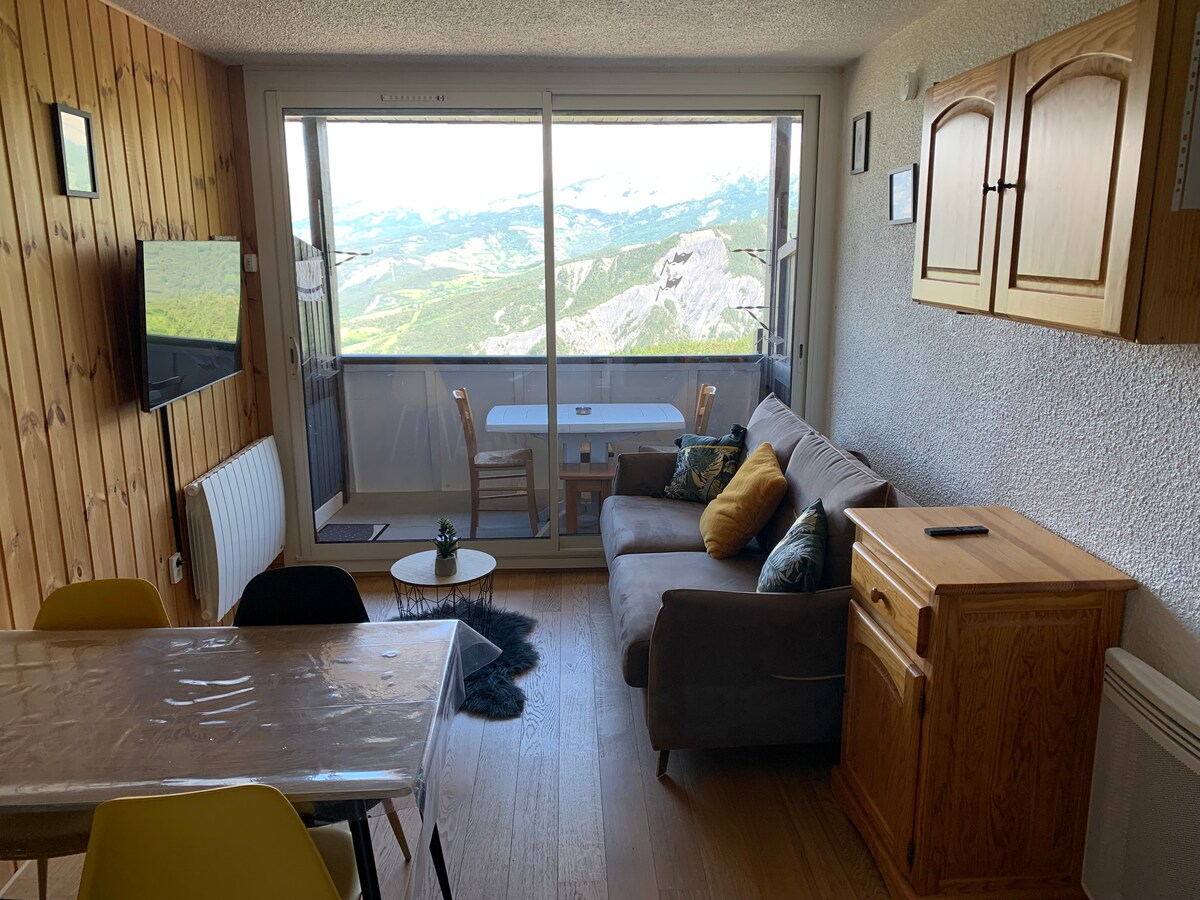 PRA-LOUP 1600 grand studio 6 pers déco montagne