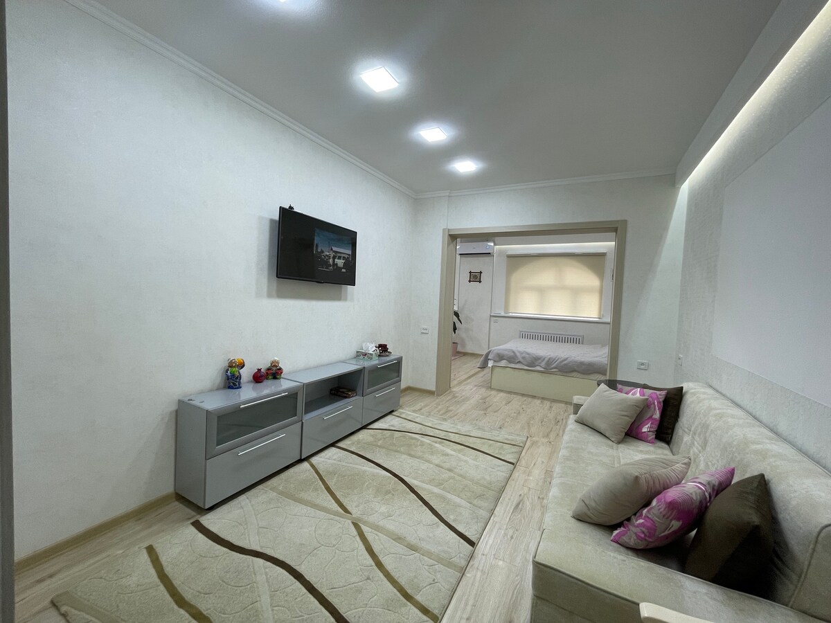 Spacious apartment in the very center of Tashkent. Beautiful view. There are many restaurants and cafes around. Equipped with everything you need to make your stay unforgettable. It is close to the famous tourist spots and attractions of the city