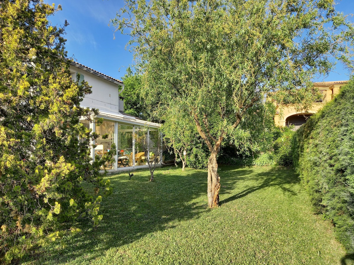 "La Maison aux Oliviers" est un petit mas de charme de 90m2, climatisé, indépendant et situé sur une ancienne oliveraie, au calme dans un jardin paysager offrant une belle piscine privative chauffée et sécurisée. Son large auvent offre la possibilité de vivre à l'extérieur à l'abri du soleil et du vent (mistral). Proche du centre historique, du marché local et des commerces (à pied), elle est parfaitement équipée pour le télétravail (Fibre haut débit)