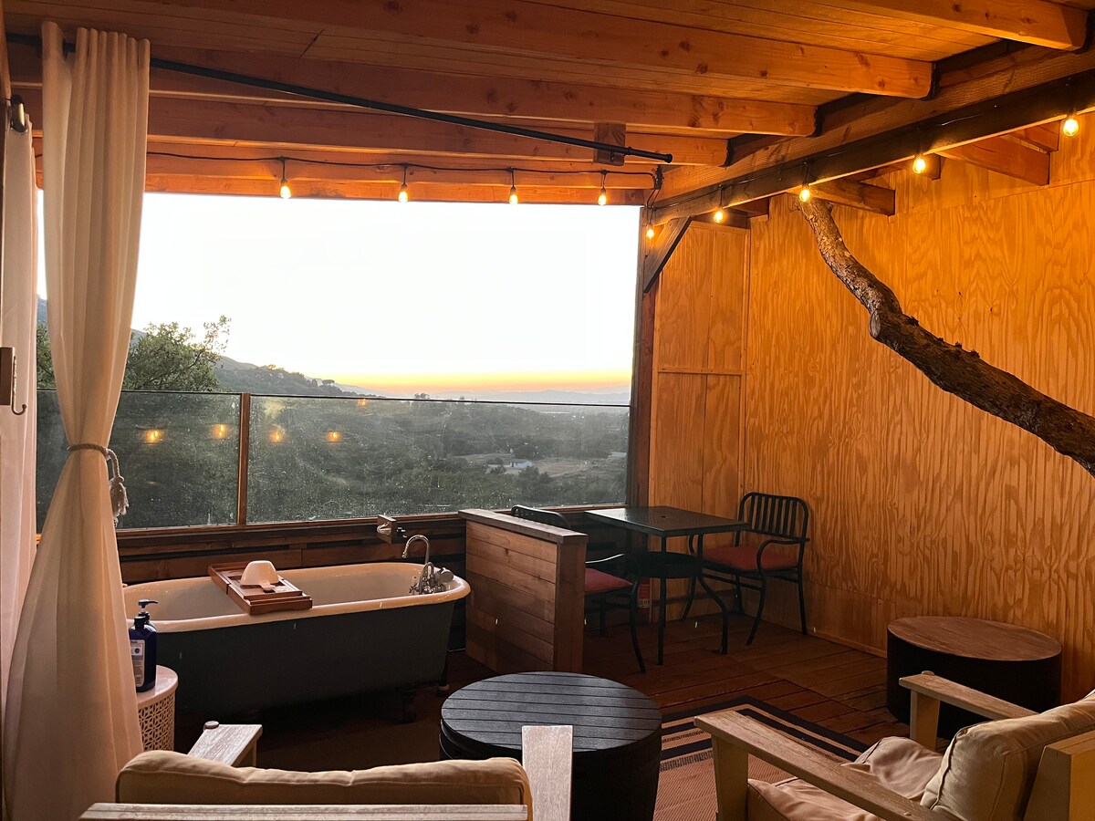 Entspanne dich in diesem atemberaubenden, von Boho inspirierten Studio unter dem Sternenhimmel! Das Studio wurde liebevoll mit weißem Shiplap, hohen Decken und modernen Details für ein luxuriöses und dennoch charmantes Ambiente gebaut. Genieße den Blick auf die Sterne und die Berge von unserem Bali-inspirierten Garten aus. Das Studio befindet sich in der ländlichen und ruhigen Hügelgemeinde Rancho Spanish Hills, einer ruhigen und gelassenen Umgebung für einen Kurzurlaub zu zweit! Obwohl sich die Unterkunft ruhig und abgelegen anfühlt, sind einige der besten Weingüter nur 15-20 Minuten entfernt!