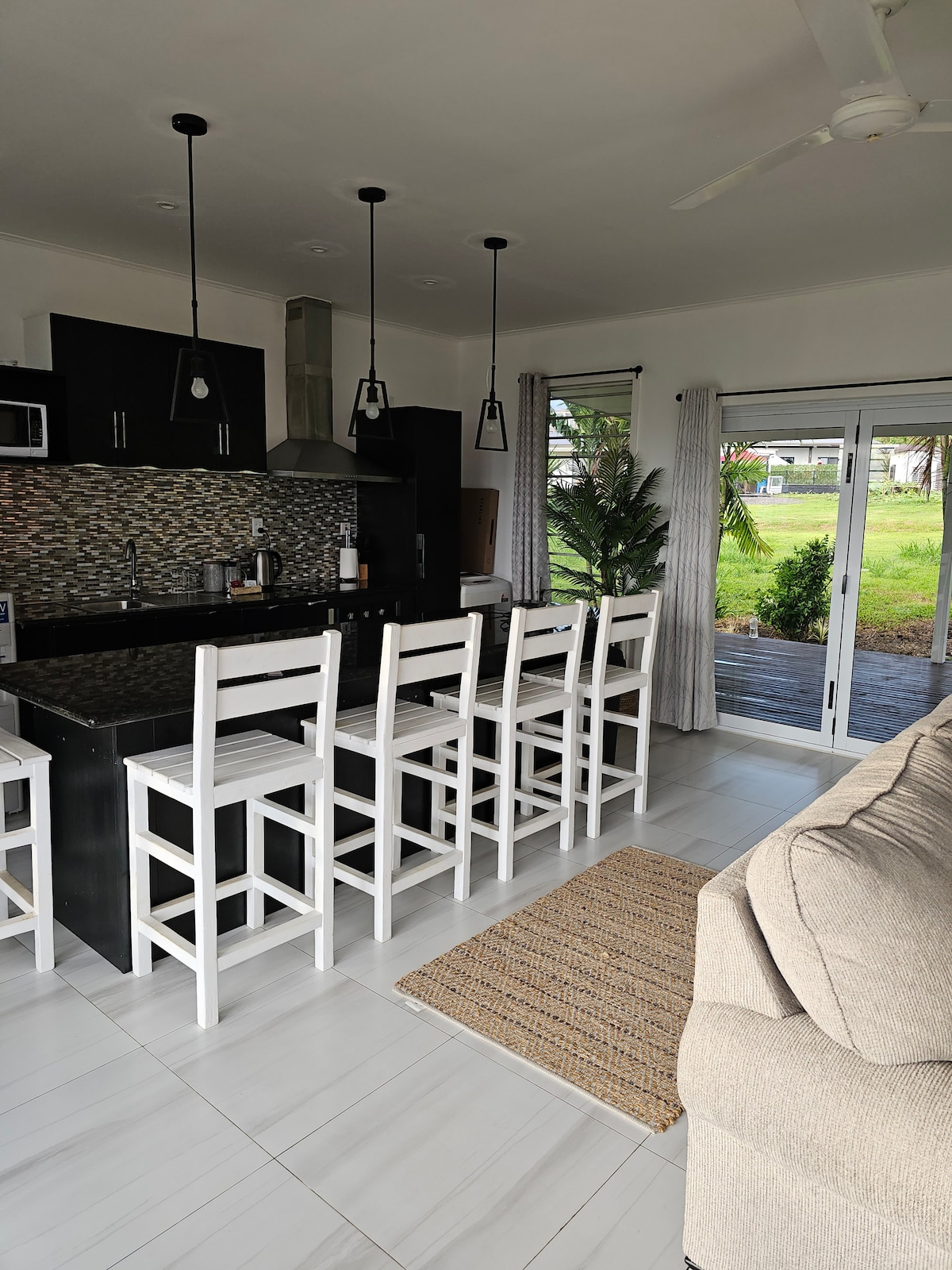 Dieses neu renovierte Haus mit 4 Schlafzimmern liegt nur 5 Minuten von der Stadt entfernt und bietet eine Mischung aus offenem Wohnen, Komfort und Geräumigkeit, bequem in der Nähe von Geschäften, Restaurants und Bars. Du wirst von einem hellen und luftigen offenen Wohnbereich begrüßt, der das Wohnzimmer, den Essbereich und die moderne Küche nahtlos miteinander verbindet. Das Dekor kombiniert inselinspirierte Elemente mit modernem Komfort und schafft eine entspannte und einladende Atmosphäre für Zusammenkünfte oder Entspannung nach einem Tag der Erkundung von Samoa.