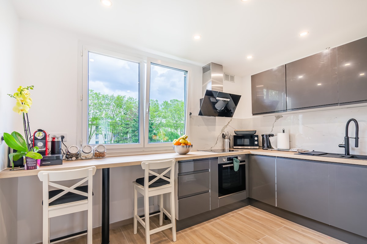 Bienvenue dans notre T2 moderne, convivial et fonctionnel, situé dans une résidence neuve et calme, à proximité de Paris. Cet appartement offre un cadre lumineux et agréable pour tous types de séjours : tourisme, voyage d’affaires ou escapade en famille. Profitez d’un logement tout confort, avec parking privé sécurisé, Wi-Fi haut débit et espace pratique pour le télétravail. À quelques pas des commerces et restaurants, avec un accès facile aux transports pour explorer Paris et ses environs.