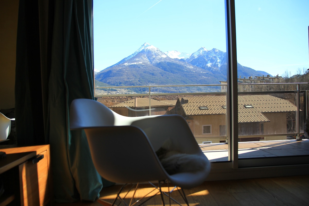 Balkon mit Blick auf die Alpen mitten im Zentrum