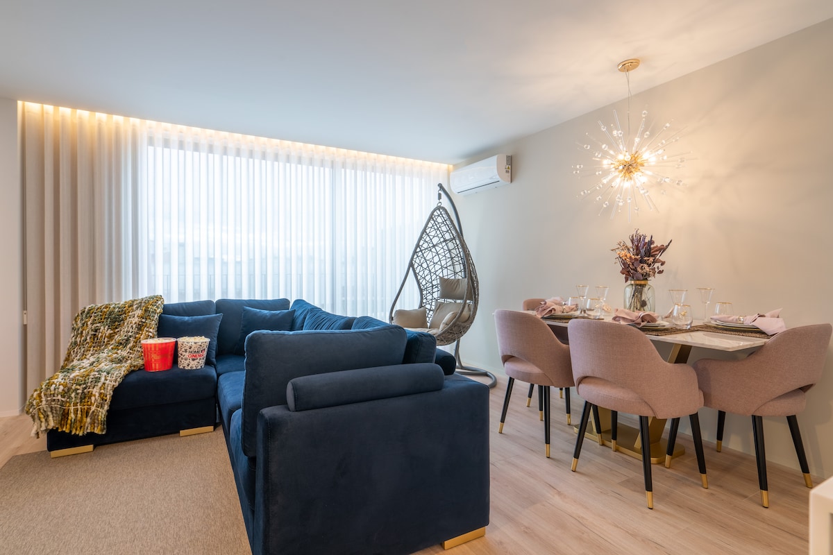 Wohnung T1 in 68 m ² bester Lage im Viana do Castelo. Um eine Vorstellung von der Unterkunft und ihrer Verteilung zu erhalten, rate ich dir, dir die Fotos anzusehen. Es gibt einen Innenraum mit einem Doppelbett und zwei Einzelbetten im Wohnzimmer. Sie liegt vor dem Schiff Gil Eannes in Largo Vasco da Gama im Herzen der Stadt. Sehr ruhige Lage, die die gewünschte Erholung ermöglicht. Die Wohnung befindet sich in einem Gebäude mit Blick auf den Fluss Lima, mit einer schönen Fassade. Die Unterkunft ist neu, die 2019 von Grund auf neu gebaut wurde.