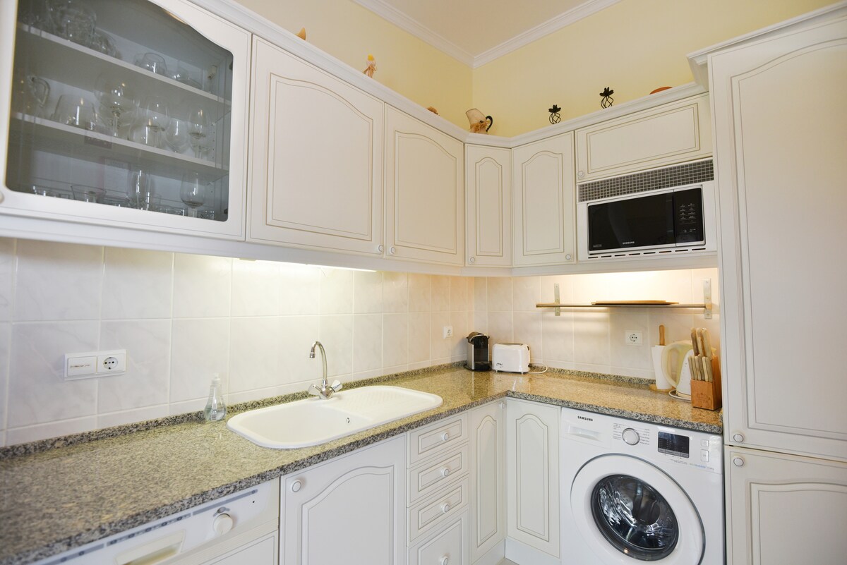 Bright spacious 2 bedroom apartment with beautiful sea views in the heart of Carvoeiro. Beach at 150 meter and shops, restaurants at the same distance. Decorated with modern furniture and linens, this place has it all! Two good size bathrooms for your comfort. Kitchen is fully equipped and all rooms do have air-conditioning. A great balcony to enjoy the view from morning till evening.The large round table let you enjoy breakfast, lunch or dinners outside. Included a Weber BBQ.