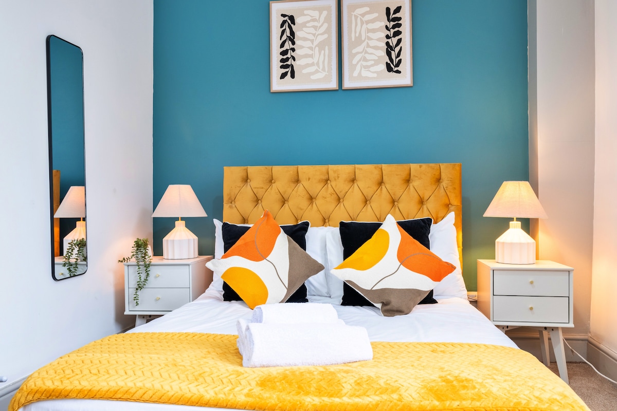 Übernachte in unserem eleganten, zentralen Apartment in Cardiff für bis zu 5 Gäste. Mit zwei gemütlichen Schlafzimmern, einem hellen Wohnbereich und allen modernen Annehmlichkeiten. In der Nähe von Top-Attraktionen, Restaurants und Geschäften. Dein perfekter Ausgangspunkt, um die Stadt zu erkunden! Wir freuen uns sehr, unsere neueste Unterkunft auf Airbnb zu veröffentlichen. Genauso zentral - noch stilvoller! SMART TV: Netflix, Amazon, Youtube usw. Super schnelles WLAN. Selbst-Check-in