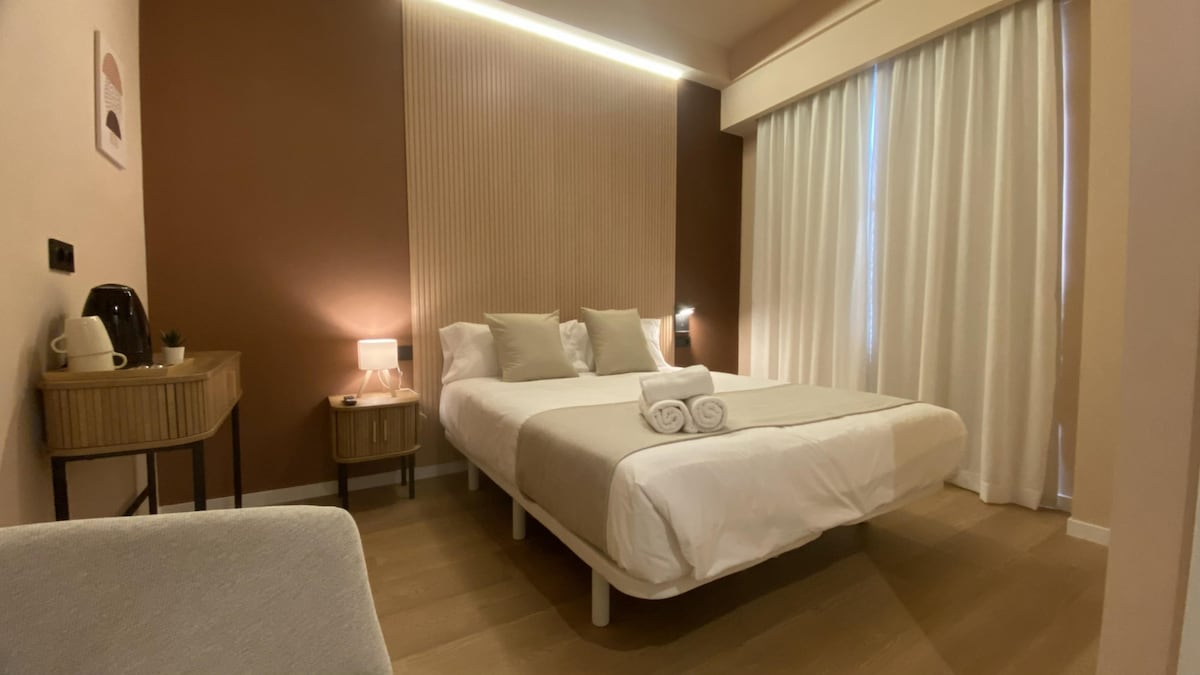Disfruta de una estancia única en nuestras habitaciones dobles del Hostal Tartessos, completamente renovadas y equipadas con tecnología moderna para tu máximo confort. Ubicadas en pleno centro de Valencia, a pocos pasos del centro histórico, ofrecen amplitud, elegancia y un ambiente acogedor. El lugar ideal para descansar y descubrir la ciudad con total comodidad.