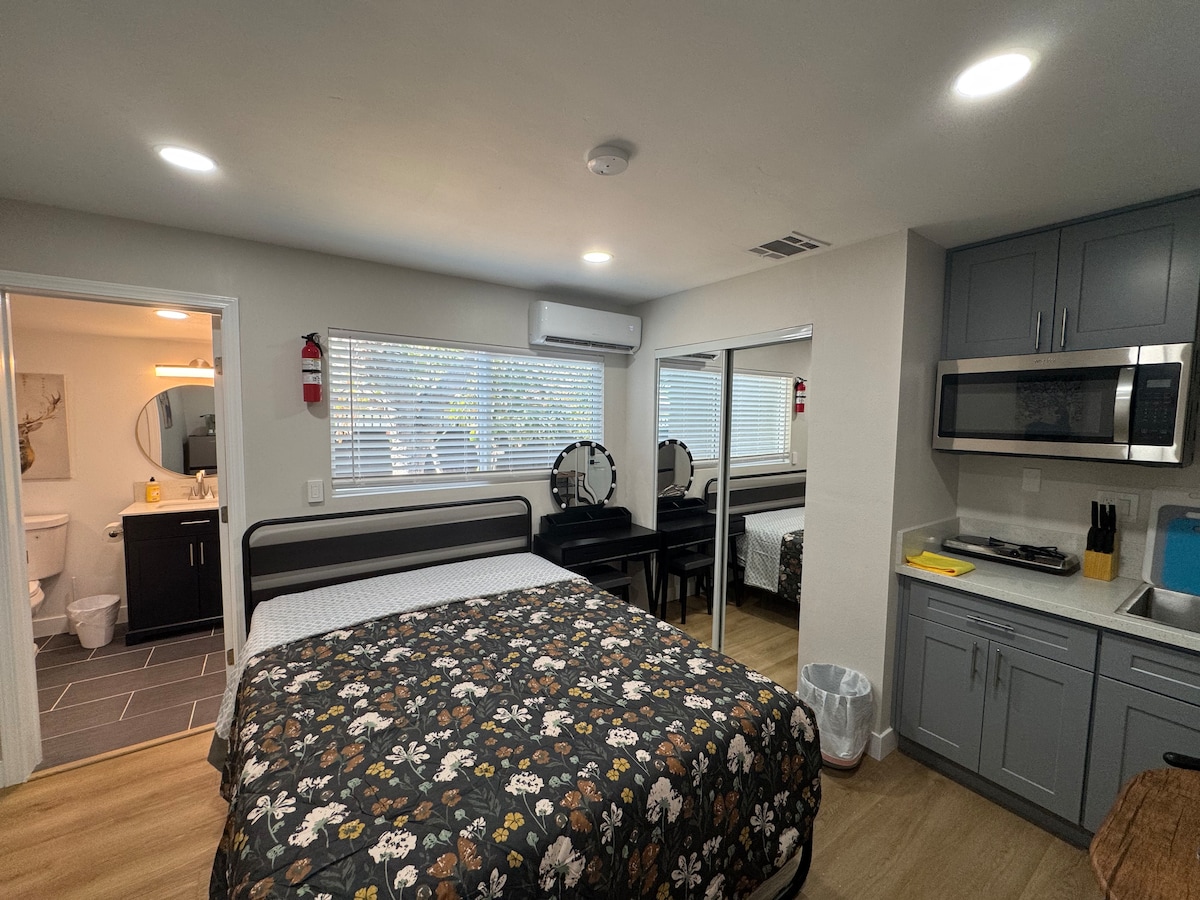 This clean, private 1-bedroom home is thoughtfully designed for comfort and convenience: • 🍳 Full-size kitchen with all essentials • 🛏 Cozy bedroom with quality linens • 💻 High-speed WiFi for work or streaming • 🛁 Private jacuzzi hot tub (fits 1) inside the unit for ultimate relaxation • 🌟 Professionally cleaned & sanitized before every stay