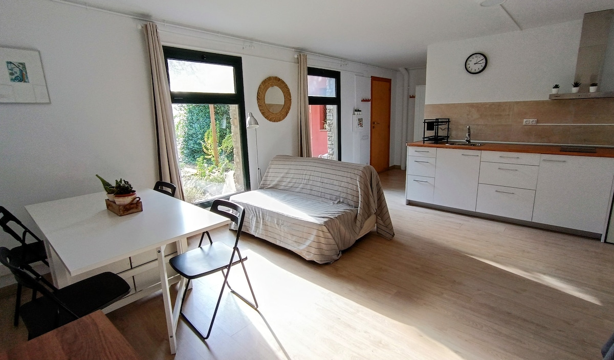 Sehr helles Studio und sehr nah an der Innenstadt von Igualada. Es ist 30 Minuten von den Bergen von Montserrat, 45 Minuten vom Strand und 50 Minuten von Barcelona entfernt. Das Hotel liegt 3 Autominuten vom Infinit-Sportzentrum entfernt, das über Innen- und Außenpools verfügt. Sie verfügt über 1 Schlafzimmer mit Doppelbett und ein Schlafsofa für zwei Personen im Wohnzimmer. Bettwäsche, Handtücher und Küchenutensilien für 4 Personen. Hat private Parkplatz im Gebäude und WLAN. Lizenznummer: HUTCC-06044.