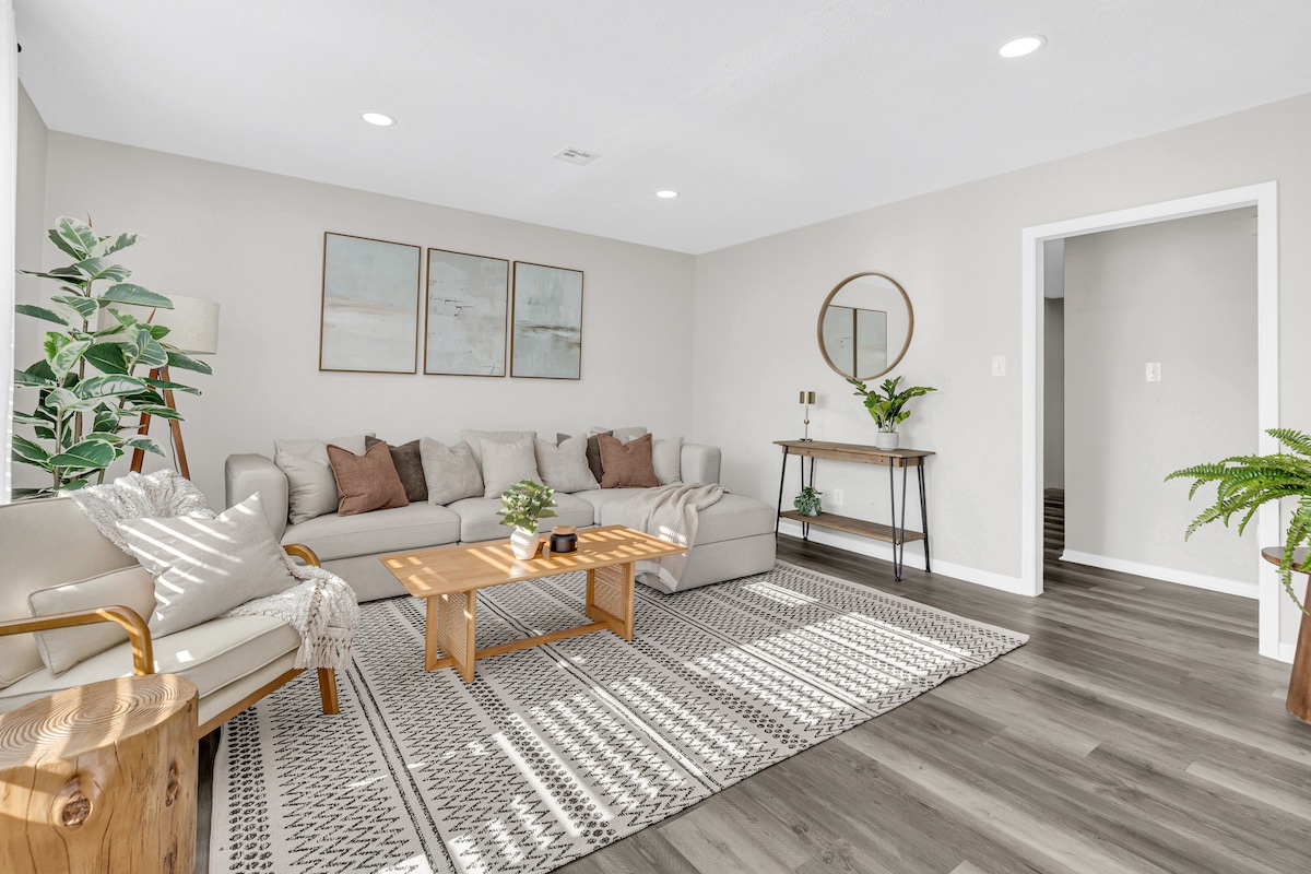Das ruhige Nest – dein friedlicher Rückzugsort Entspanne dich mit der ganzen Familie im The Quiet Nest, egal ob du einen Wochenendausflug genießt oder dich nach einem langen, anstrengenden Tag auf einer Geschäftsreise entspannst. Dieses komfortable Haus mit 3 Schlafzimmern und 2 Bädern liegt versteckt in einer ruhigen Nachbarschaft mit einem großen privaten Garten - perfekt für Kinder oder einfach nur etwas frische Luft und Ruhe. Im Inneren findest du gemütliche Räume, eine voll ausgestattete Küche und alles, was du brauchst, um dich wie zuhause zu fühlen.