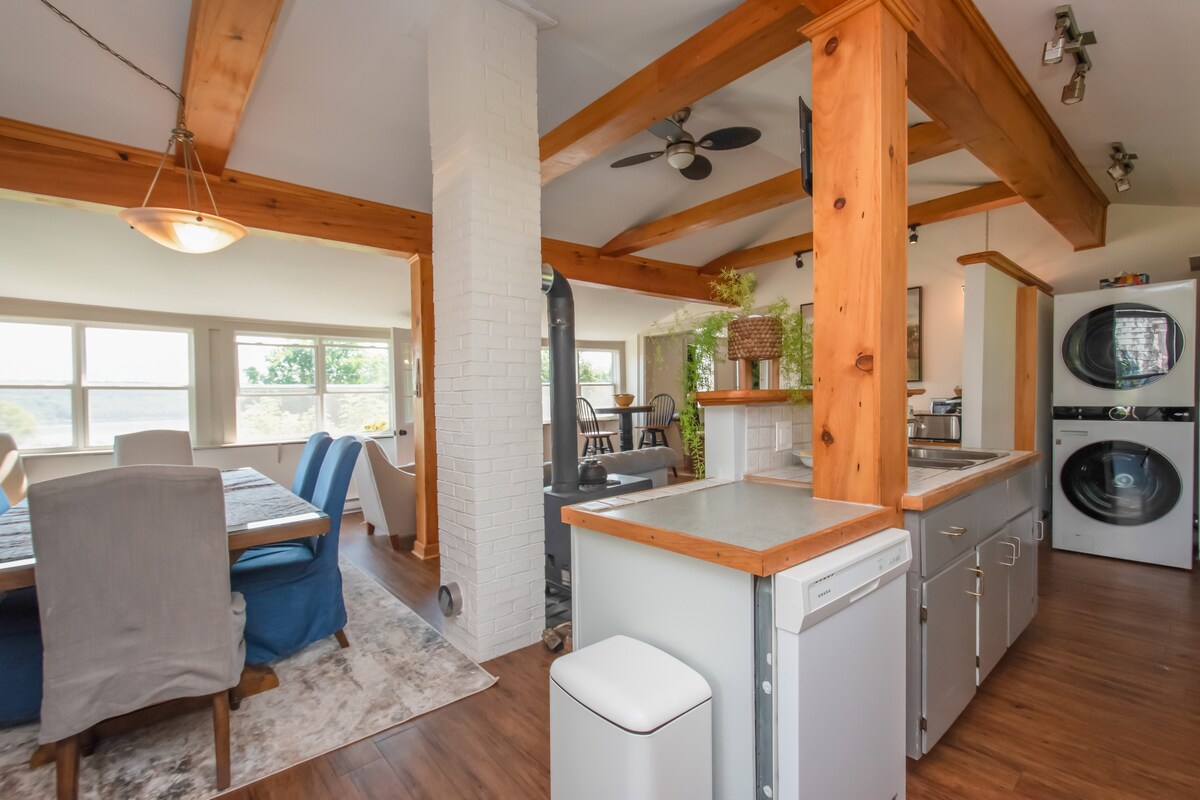 Eine Unterkunft, die sich um jeden kümmert. Entspanne dich allein oder mit der ganzen Familie in diesem Haus mit drei Schlafzimmern am St. John River/Belleisle Bay. Das Haus befindet sich auf einer ruhigen Gasse, die von der Hauptstraße zurück ist. Genieße das offene Wohnzimmer mit einer voll ausgestatteten Küche, zwei Esstischen, zwei voll ausgestatteten Badezimmern, einem Wohnzimmer und einer Waschküche. Genieße einen Kaffee, während du vom Wintergarten aus die schöne Aussicht auf den Fluss genießt. Die Hauptebene verfügt über eine Wärmepumpe mit Klimaanlage. In kälteren Monaten genießen Sie den Holzofen. Bring auch deine pelzigen Babys mit!