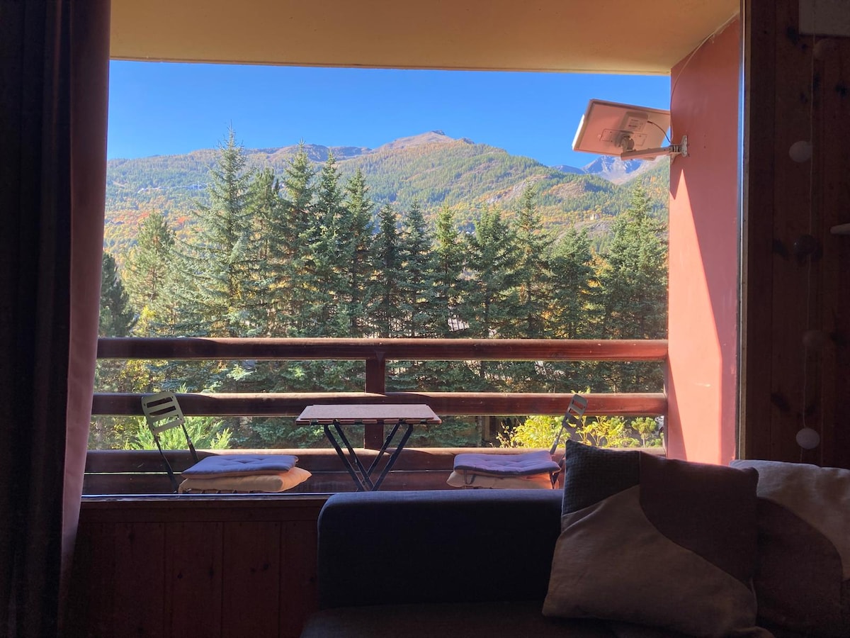 Studio rénové au pied des pistes, avec une vue magnifique (dernière étage, donc très calme). Parking gratuit au pied de la résidence. Avec un casier à ski. Toutes les commodités dans la station au pied de l'appartement dont, 2 supérettes, Boulangerie, restaurant, pharmacie, magasins, Piscine chauffée (payante), cinema, remontées mécaniques, Office de tourisme. Le studio est à 30 minutes en voiture de Briançon, 50 minutes de la frontière Italienne et à 2 h de la ville de Turin.