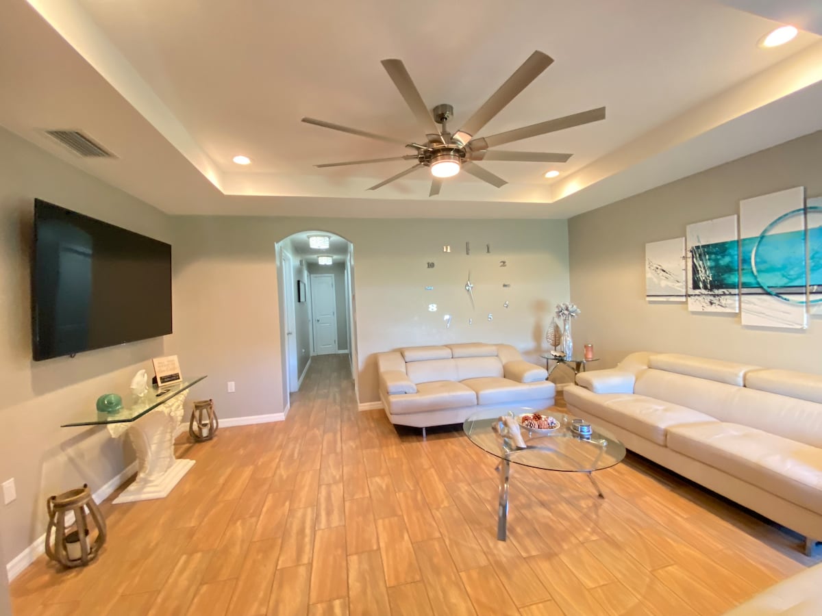 Stay at one of Sarasota’s top-rated Airbnbs, perfectly centered between the ever famous Siesta Key and several other stunning beaches. Lounge by the newly renovated heated pool with upscale chaise lounge chairs, lush garden views, and a stylish patio with ample seating. Inside, enjoy a modern, beach vacation themed design with an open layout, fully stocked kitchen, fast WiFi, and Smart TVs in every bedroom. Your on-site Superhost is nearby but works full time and gives total privacy.
