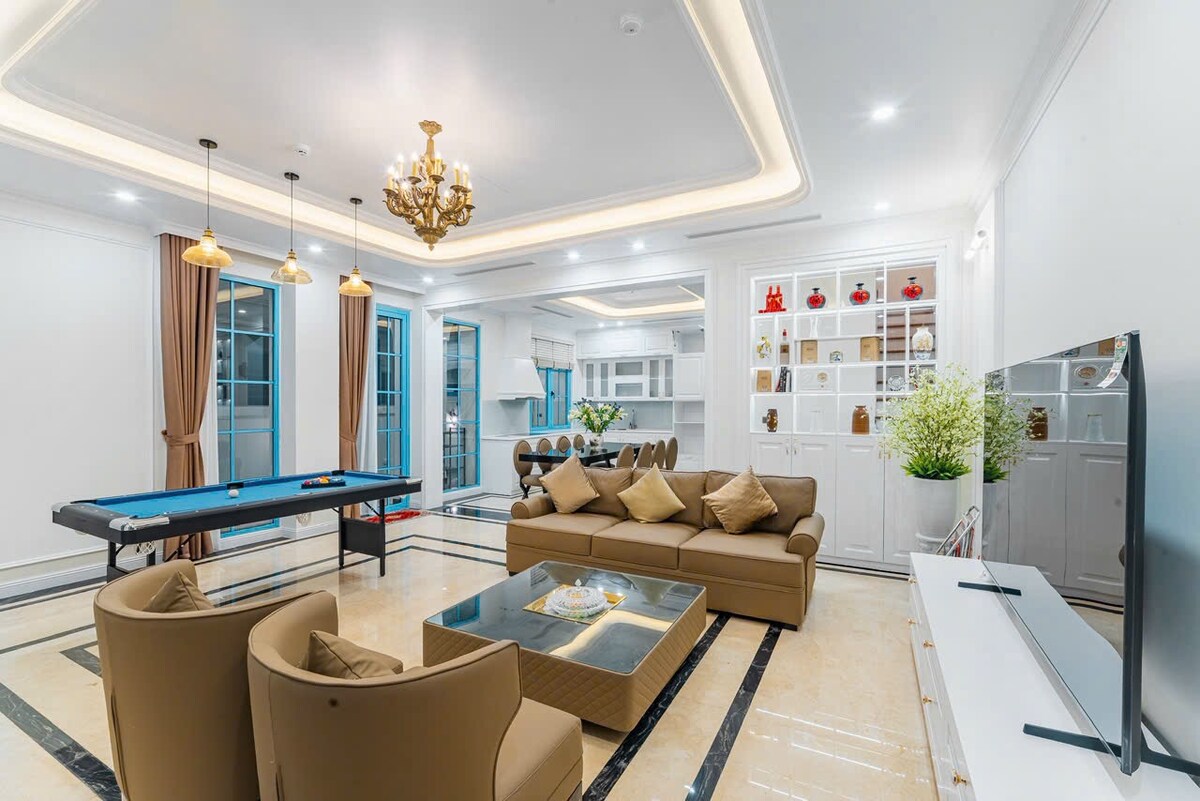 Treten Sie ein in Ihre eigene Villa im Herzen von Ha Long. 🌟Mit drei Schlafzimmern mit eigenem Bad, einem privaten Pool und einem üppigen Garten ist es ein Rückzugsort, der sowohl für Entspannung als auch für Verbindung konzipiert ist. 💦 Entspanne dich im Whirlpool oder in der Sauna, trefft euch im geräumigen Wohnzimmer oder kocht gemeinsam in der voll ausgestatteten Küche. 🌈 Familien werden das Kinderzimmer lieben, und der Aufzug macht jede Etage - Spa-Raum und Waschküche inklusive - leicht zugänglich. ✨Nur wenige Minuten vom Strand, Cafés und Top-Attraktionen entfernt!