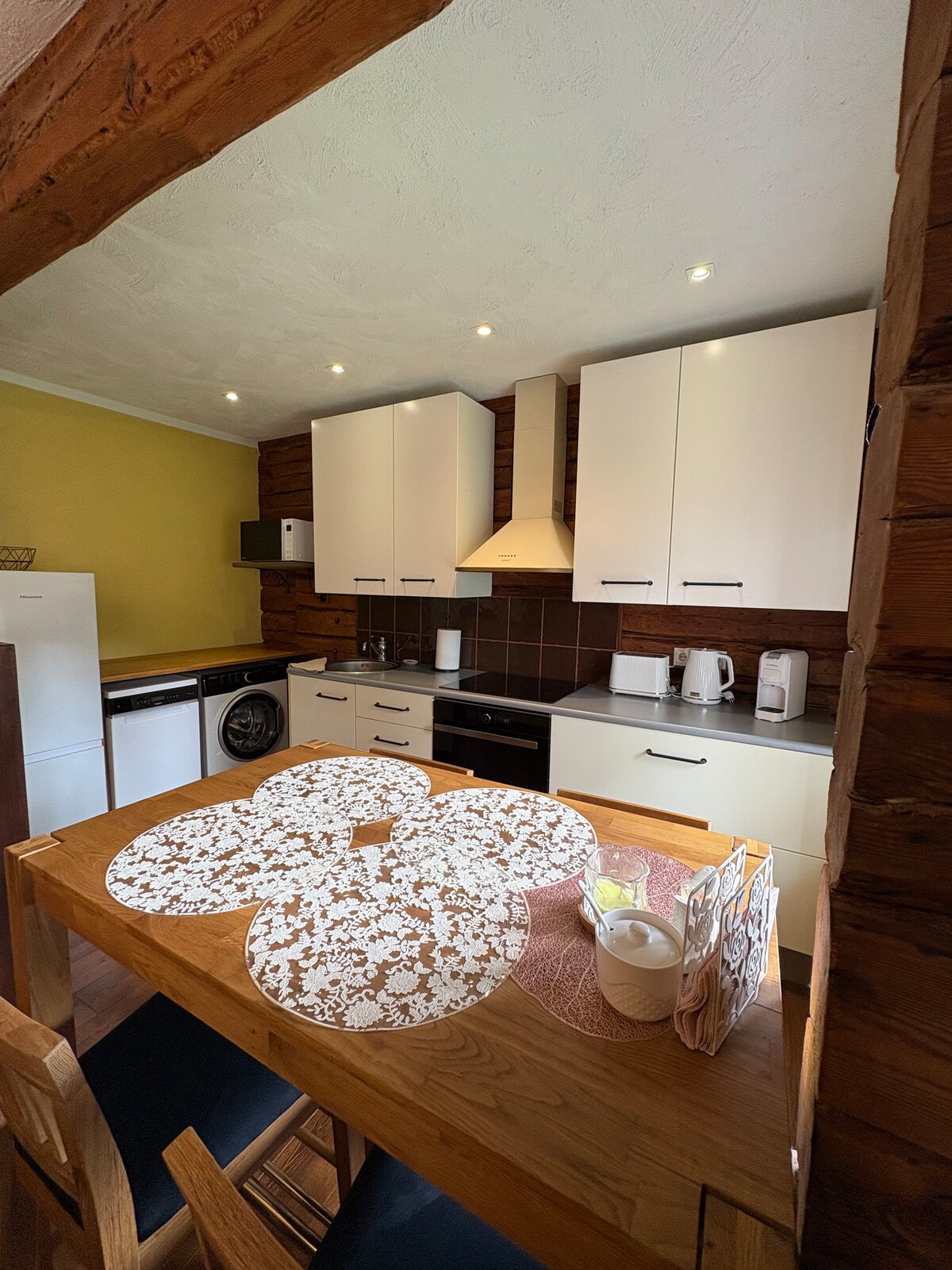 Gemütliches 50 m² großes Loft mit 2 Schlafzimmern und einem Wohnzimmer mit Kamin und moderner Küche befindet sich im dritten Stock eines Holzgebäudes (Baujahr 1879), das sich in der besonderen Erhaltungszone der Altstadt befindet, direkt im Zentrum von Viljandi und in der Nähe von allem – Cafés, See und Schlossruinen. Das Haus ist frisch renoviert und verfügt über eine Zentralheizung und eine moderne Belüftung, aber immer noch mit alten Details, die für Viljandi charakteristisch sind und ein historisches Flair und ein wenig Abenteuer verleihen.