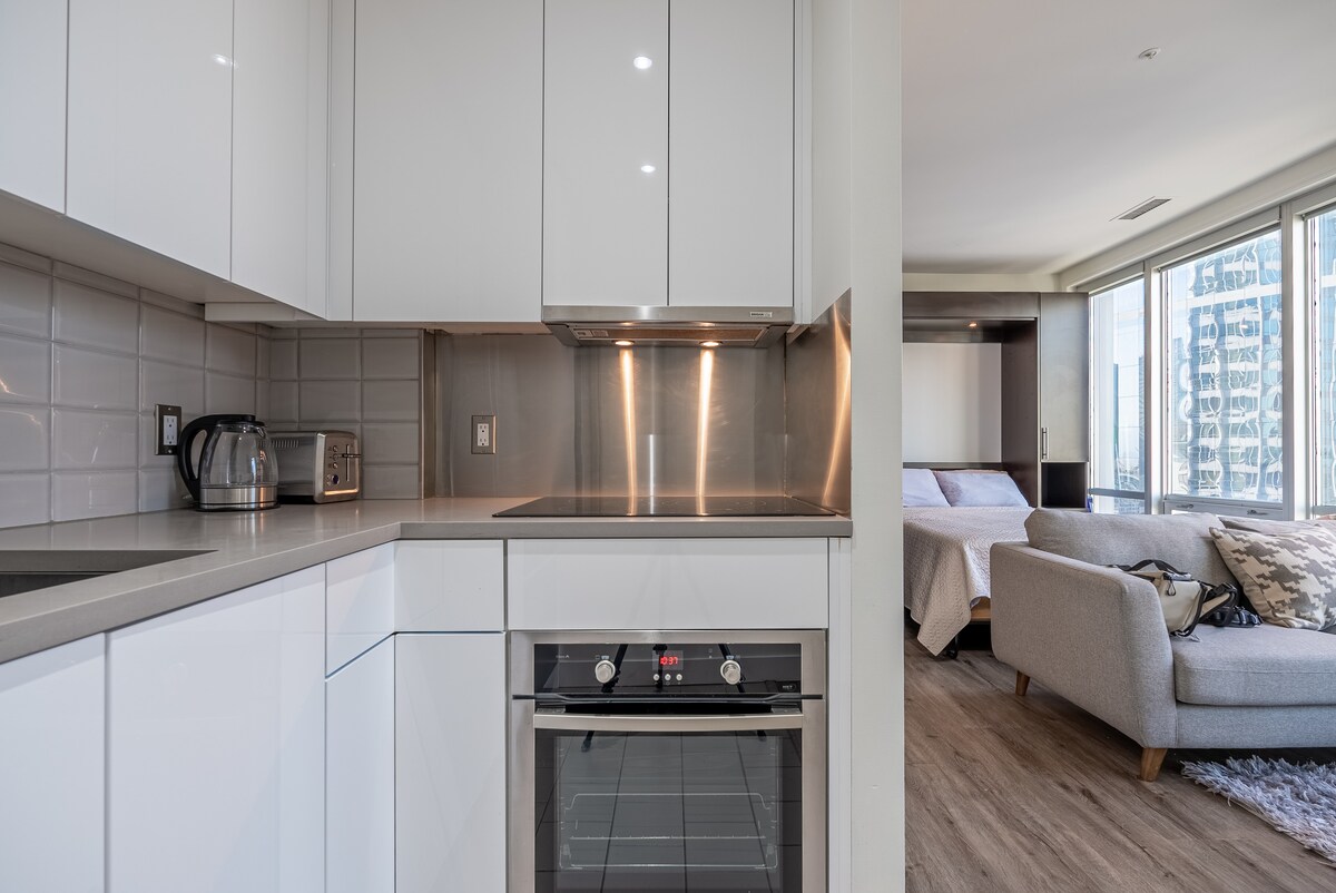 Welcome to our centrally located furnished studio apartment in the heart of Downtown Vancouver. Perfectly located near the Seawall, Supreme Court, UBC, Robson Shopping area, BC Place, and Burrard SkyTrain, Business Offices, this space blends comfort with city convenience. The studio features a cozy queen bed, fully-equipped kitchenette, workspace, and modern bathroom—ideal for business travelers, couples, or solo adventurers.