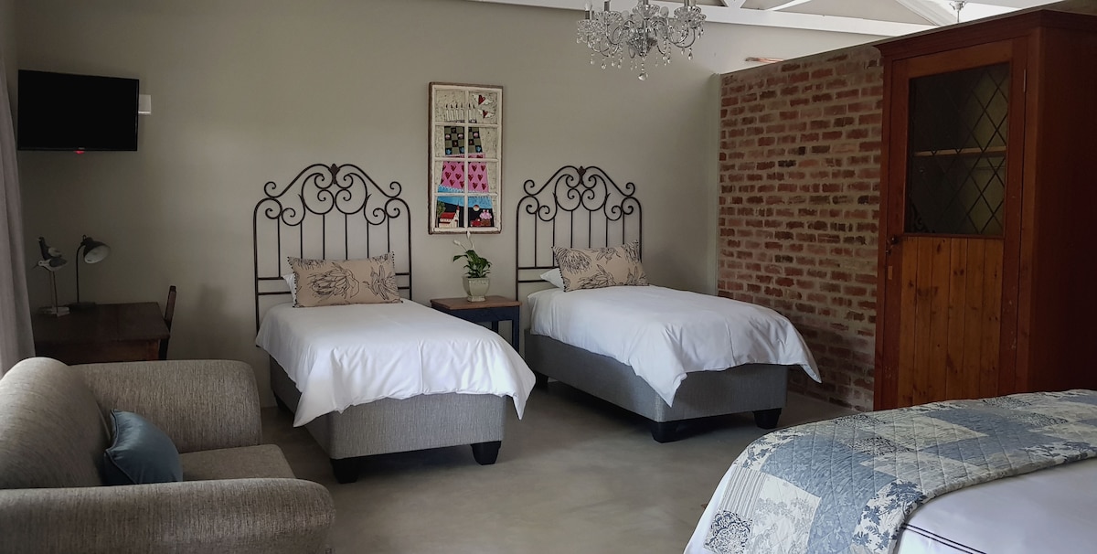 Kostenloses WLAN, 1x Queensize-Bett, 2x Einzelbett, Arbeitsbereich, Farbfernseher mit DStv, Dusche und Bad, Lounge, Kochnische