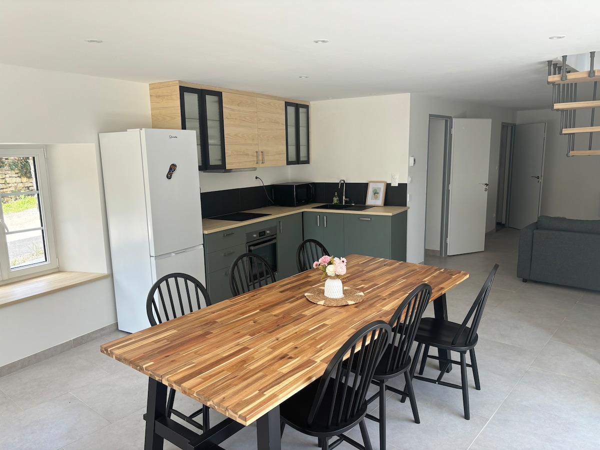 "La Maison d' à côté" , une petite maison de campagne, refaite à neuf, vous accueille pour un séjour de travail ou un séjour en famille. Située dans un village de 1200 habitants à 10 kms de Langres et à 1 km de la sortie d'autoroute LANGRES-NORD, croisement des autoroutes A5 et A31. Au centre du village, vous aurez accès aux commerces essentiels : Boulangerie, pharmacie, supermarché (ouvert tous les jours), Médecin, infirmières, garages, bar-restaurant, food-truck. Pas de souci de parking.