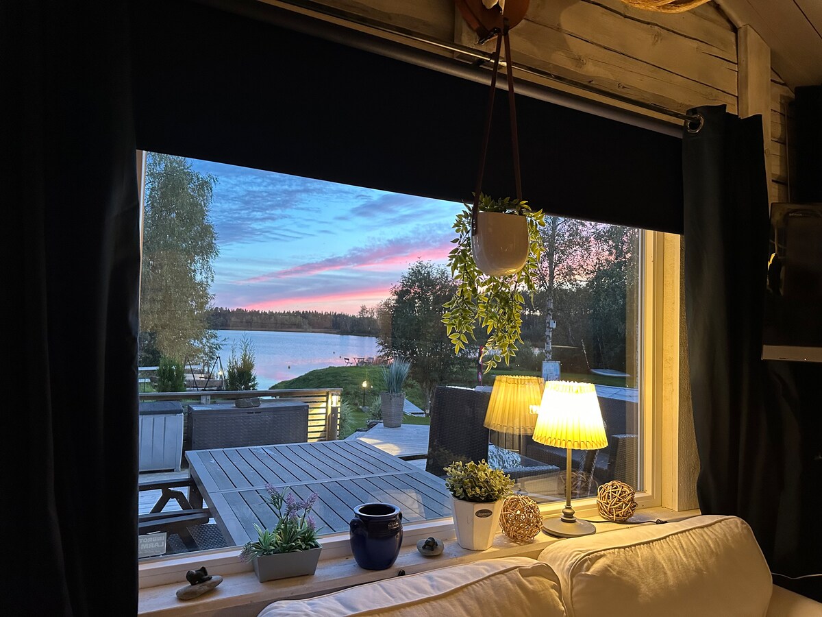 Mindre stuga endast 15m till älven! Bra Solläge! Fullutrustat kök. Dusch, wc och tvätt/torkmaskin. 48" TV med chromecast. 160 dubbelsäng. 140 bäddsoffa. Vedeldad bastu & spabad finns, 750kr/4h spabad, 750kr/4h bastu. Sängkläder/handduk hyra 150kr per person. Spabad garanteras inte när bokning sker mindre än 5 dygn före.(rengöring, kem o klor) Njut av utsikten, fina promenad stråk, nära centrala stan, naturreservat, Ica maxi & Avion.