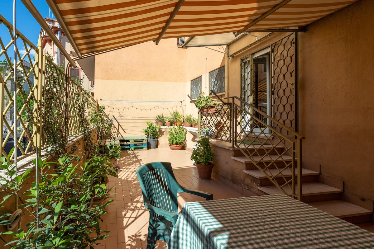 Im historischen Zentrum von Rom, im charakteristischen Viertel Testaccio. Neu renovierte Wohnung für 6 Personen mit WLAN, Klimaanlage, bequemen orthopädischen Matratzen. Sie besteht aus zwei Schlafzimmern mit 32-Zoll-Smart-TV, jedes mit eigenem Bad, Wohnzimmer mit 43-Zoll-Smart-TV, Küche mit Induktionskochplatten, Geschirrspüler, Backofen, Wasserkocher, Toaster, Kaffeemaschine. Eine große Terrasse von 30 qm ausgestattet mit Tisch, Stühlen, Sonnenschirm