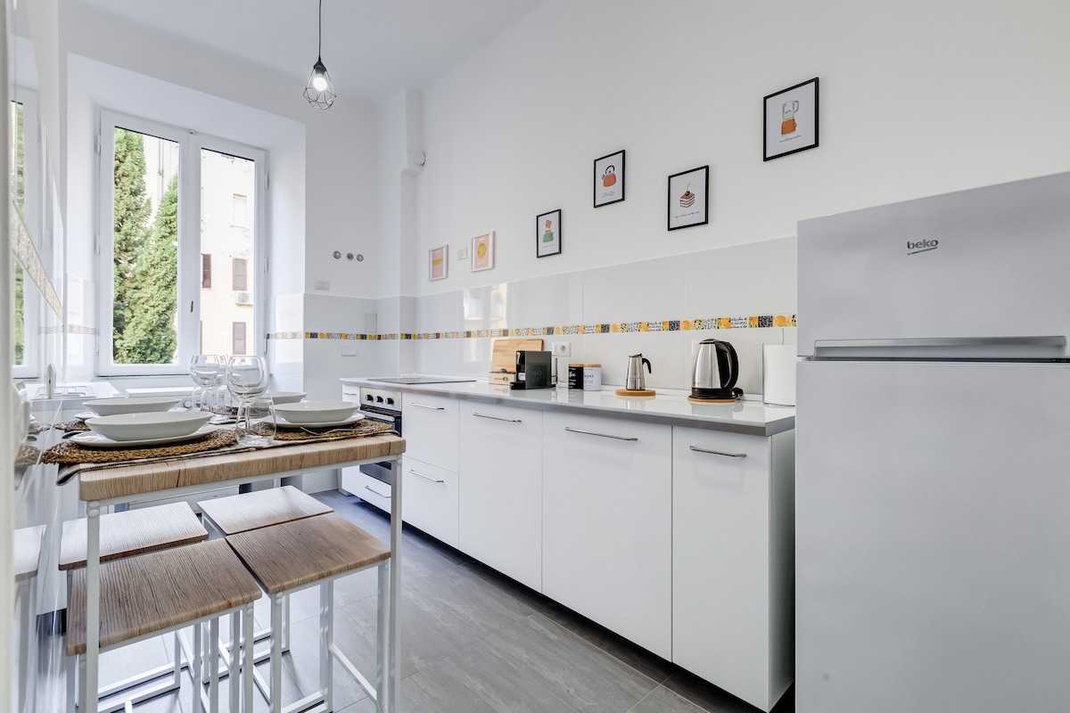 Schöne und ruhige Nische im Stadtteil Prati, 150 Meter vom Vatikan, nur wenige Gehminuten vom historischen Zentrum entfernt, ausgezeichnete Verkehrsanbindung (U-Bahn 300 Meter). Alle Annehmlichkeiten, Aufzug, schnelles WLAN, italienische Küche, frisch renoviert, Klimaanlage im ganzen Haus, neues Badezimmer mit Sitzdusche und Oberflächen aus italienischer Terrakotta, italienische Terrakotta auf dem Boden und an der Decke sowie ein echter italienischer Koch/Hausbesitzer, der darauf wartet, dich willkommen zu heißen.