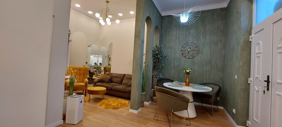 Das Apartment der Arinis-Klasse, in einer malerischen Umgebung, direkt im Herzen des Arinis-Parks in Gura Humorului gelegen, entfaltet sich harmonisch auf einer großzügigen Fläche von 75 m². Dieser gemütliche und raffinierte Raum bietet erstklassige Annehmlichkeiten: zwei elegante, helle und geräumige Schlafzimmer, modern eingerichtet, jedes mit komfortablen Kingsize-Betten ausgestattet. Der Wohnbereich, der mit Geschmack und Liebe zum Detail gestaltet wurde, umfasst ein Ledersofa, einen eleganten Essplatz, der für 6 Personen gedacht ist.
