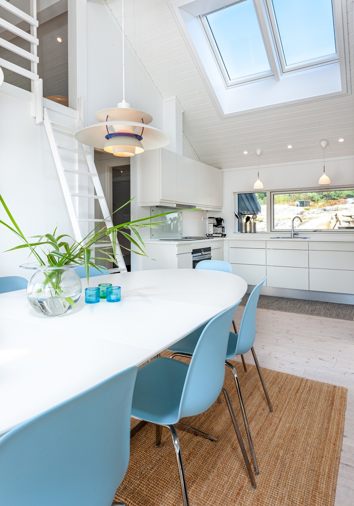 4 Schlafzimmer, 2 Badezimmer und 2 Wohnbereiche. Ein Schlafzimmer auf der zweiten Etage ist ein Familienzimmer mit einem Doppelbett und einem Schlafsofa. Zwei Schlafzimmer verfügen über Familienbetten mit 180 cm Betten im Erdgeschoss und 90 cm im Obergeschoss. Das letzte Schlafzimmer verfügt über ein normales Doppelbett. Esszimmer mit Platz für 12 Personen. Heizung mit Heizkabeln im Boden, Wärmepumpe und Holzofen. Drahtloses Netzwerk (Glasfaser). AppleTV verfügbar.