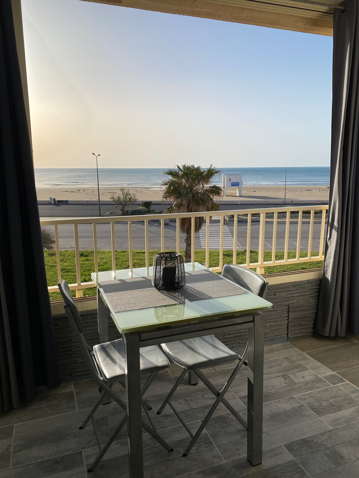 Vue mer exceptionnelle et dégagée depuis le balcon, le séjour et la chambre. Idéalement situé: à 15 mètres des plages et 3 minutes à pieds du centre ville. Appartement en angle, au deuxième et dernier étage (sans ascenseur) totalement rénové. WIFI fibre, TV connectée (280 chaines, accès Netflix avec votre abonnement, films et séries gratuits sur OQEE) couchage de qualité (lit de 140 dans la chambre). Lave linge. Parking privé et sécurisé par un portail. Linge de lit et serviettes en option (25€)