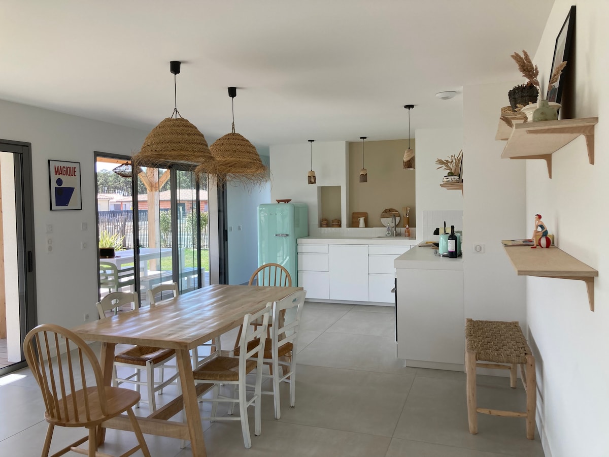 La Cabane Océane, eine Architektenvilla mit gepflegter Dekoration, empfängt Sie bequem mit 4 Schlafzimmern, 2 Bädern, einer voll ausgestatteten Küche und einem Abstellraum. Die Villa ist hell mit ihrem geräumigen Wohnzimmer, das sich zu einem schönen Naturgarten und einem ruhigen Garten mit beheiztem Pool (8x4) öffnet. Ein Radweg vor dem Haus führt Sie zu den Stränden. Pauschale Reinigung vor Ort zu zahlen 220€. Seien Sie versichert, dass wir alles tun werden, damit Sie einen angenehmen Aufenthalt haben.