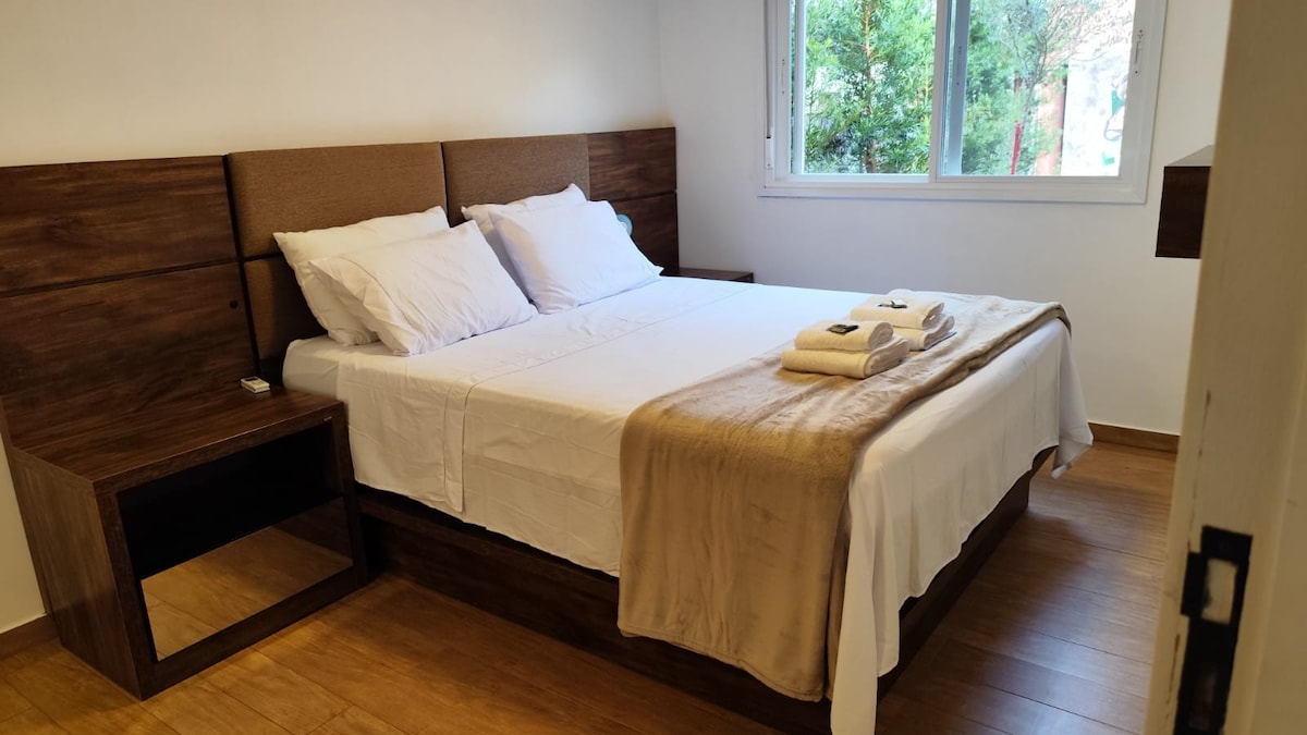 Apartamento central e próximo ao hospital Santa Cruz. Dormitório com cama casal e sala com sofá cama. Apenas a duas quadras do hospital Santa Cruz e a poucos minutos caminhando da Catedral. Localizado no Centro de Santa Cruz do Sul é o coração pulsante da cidade com intensa atividade comercial e de serviços., proximidade à Catedral São João Batista, praças históricas e facilidade de locomoção.