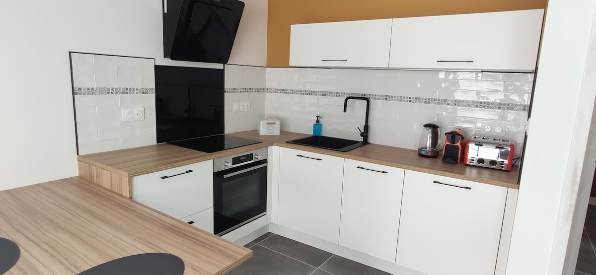 Profitez du confort de ce logement neuf et climatisé composé: - à l'étage de 2 chambres ayant chacune une salle d'eau et wc - Au rdc d'un salon/cuisine, d'une petite terrasse privative et d'un espace de stationnement. Nous fournissons le linge de lit et les serviettes de bain. Une machine type "nespresso",four,micro-ondes, bouilloire,lave vaisselle,lave linge,wifi et télévision son à disposition. Situé à 10min de l'entrée de La Rochelle,20 min du pont de l'île de ré et 30 min du marais poitevin