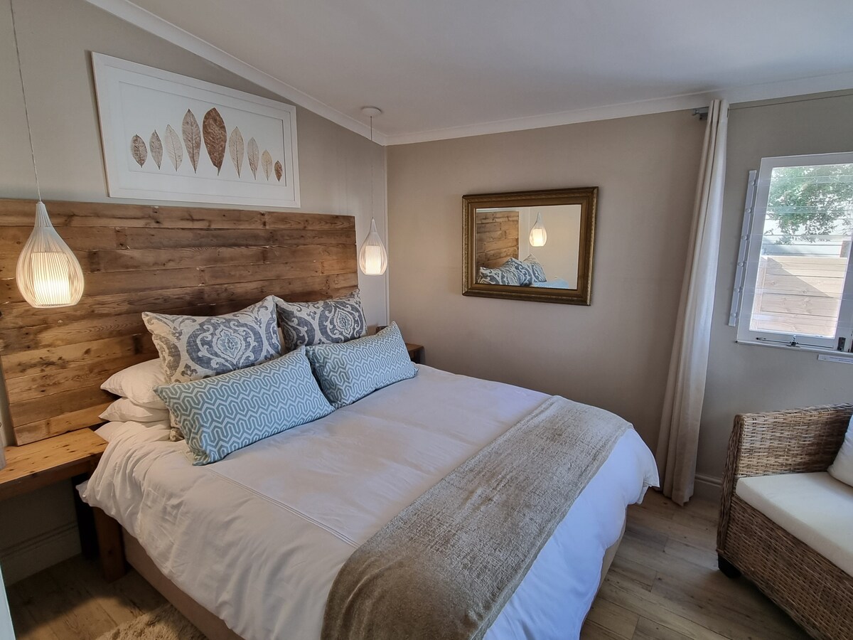Dieses moderne, geräumige Ferienhaus bietet alles, was du für einen perfekten Urlaub oder einen Kurztrip benötigst. Atemberaubender Garten mit Pool. Innen-/Außen-Braai-Raum mit Esszimmer und Lounge-Möbeln. Voll ausgestattete Küche mit modernem Einbauherd, Nespresso, Kaffeemaschine, Geschirrspüler, Waschmaschine und Trockner. Schlafzimmer mit Queensize-Bett und großzügigen Einbauschränken und eigenem Bad. Komfortable Lounge. Großer Smart-TV, verwende deine eigenen Streaming-Apps. Schnelles WLAN. Weniger als 1 km vom Stadtzentrum und dem Klippenpfad entfernt.