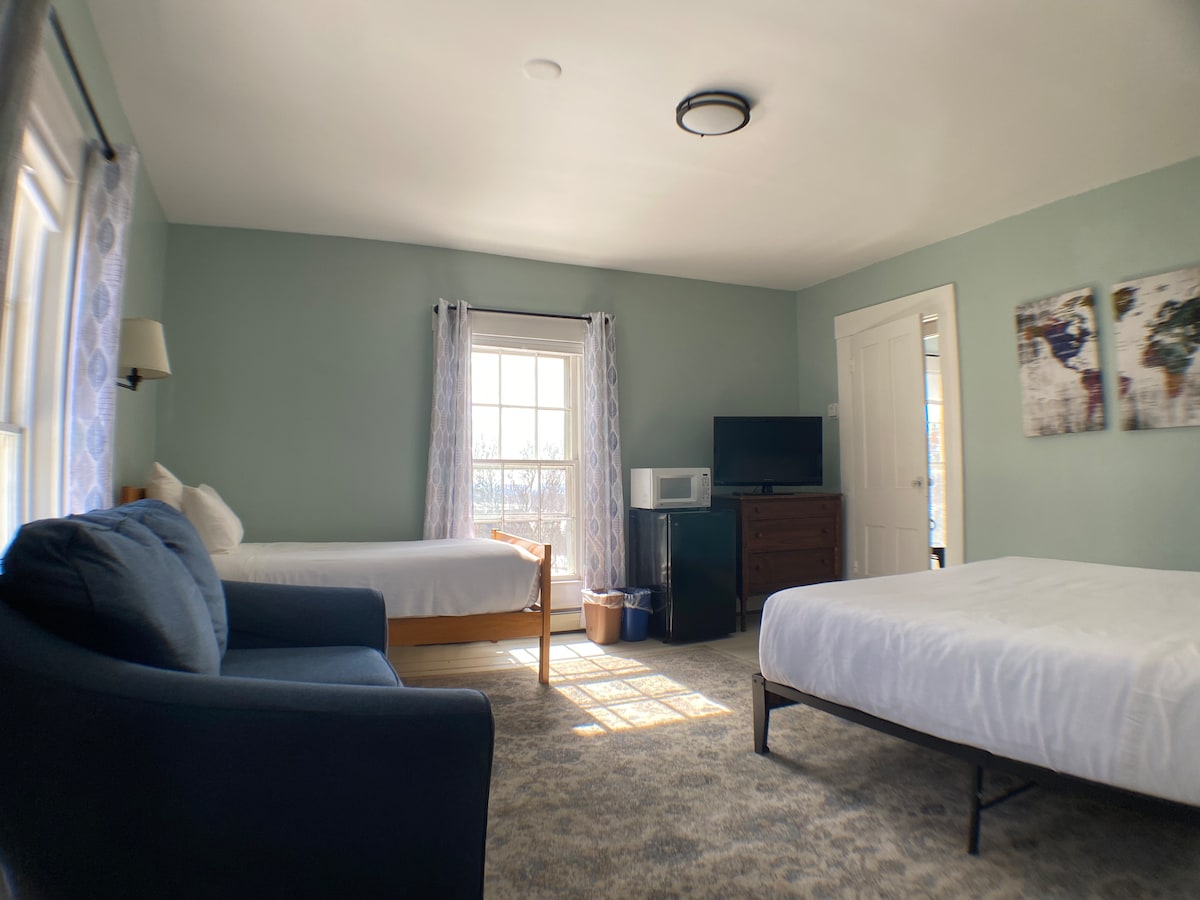 In den Hügeln, umgeben von einem Apfelgarten auf der einen Seite und Bergen auf der anderen Seite, bietet der Harwood Hill Erholung in der südlichen Vermont-Landschaft, nur zehn Autominuten von Benningtons Restaurants, Galerien und Museen entfernt. Unsere Zimmer sind modern und komplett renoviert, mit lokaler Kunst im Innen- und Außenbereich. Entspanne dich um die Ecke auf unserer tollen Rasenfläche mit einer Hängematte, Picknicktischen, einem Feuerring und einem herrlichen Blick auf den Mount Anthony. Am Wochenende bieten wir ein kostenloses kontinentales Frühstück an.