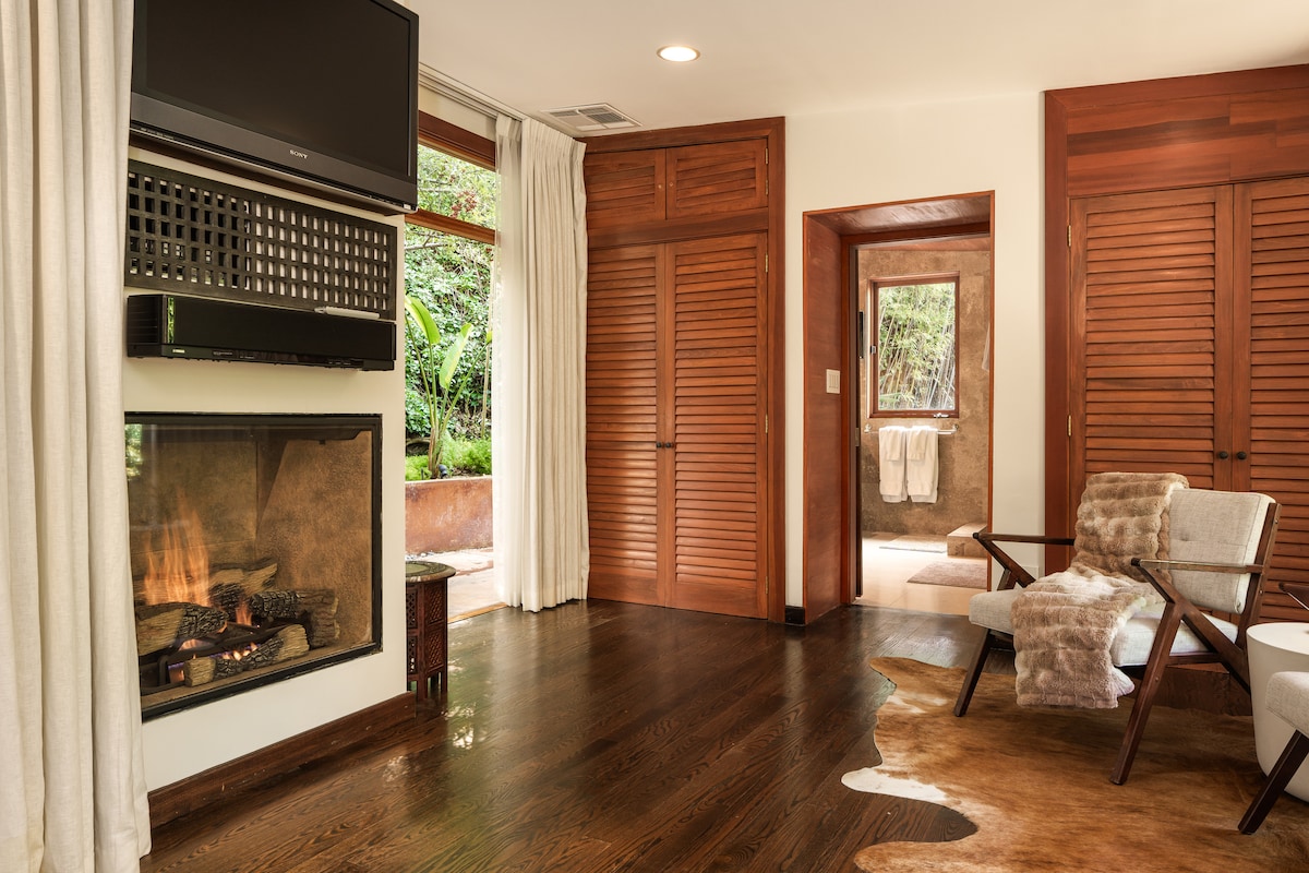 Ruhiger Rückzugsort, eingebettet in die Hollywood Hills; spirituelle Zen, private Oase. Sinnvoll und cool mit einem modernen asiatischen/balinesischen Einfluss, perfekt für Unterhaltung im Innen-/Außenbereich. Jedes Badezimmer bietet Ruhe und Entspannung. Geräumiges Hauptschlafzimmer mit Kamin und eigenem Bad, Badewanne und Regendusche. Entspanne dich im beheizten Spa im Freien. Dieses Haus erinnert an eine emotionale Reaktion. Wir sind auch tierfreundlich. Unsere Unterkunft bietet nur Platz für bis zu 8 Personen. Es sind keine weiteren Gäste oder Besucher erlaubt.
