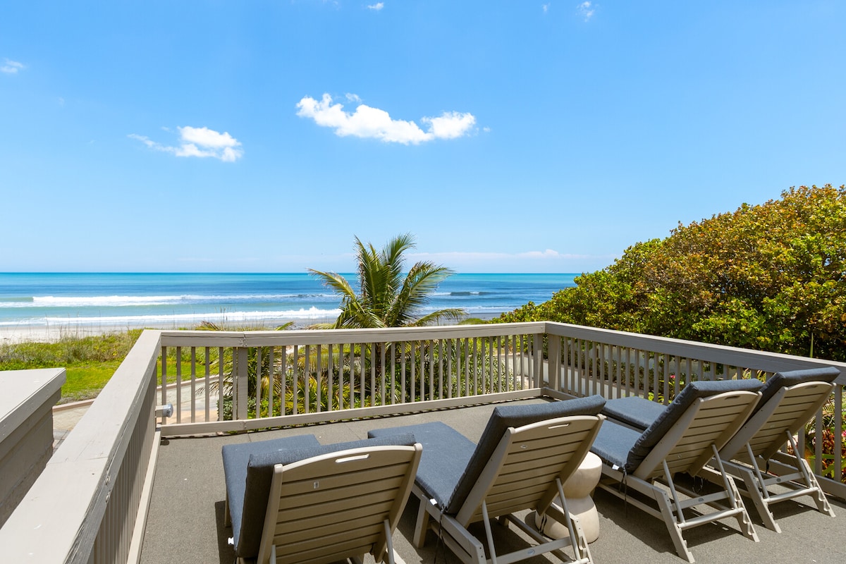 Wake up to the sounds of the waves in this ocean front oasis. Home offers 3 levels, each floor offering magnificent views of the ocean and beautiful sunrises. Lg sundeck on 2nd floor perfect for sunbathing. Home has been tastefully decorated and remodeled with all new furniture, fixtures, and much more. Home offers private beach access. Close to Starbucks, many restaurants, ice cream shop and only a 7min drive to Downtown Melbourne. There’s a 2nd unit attached to this property that also rents.