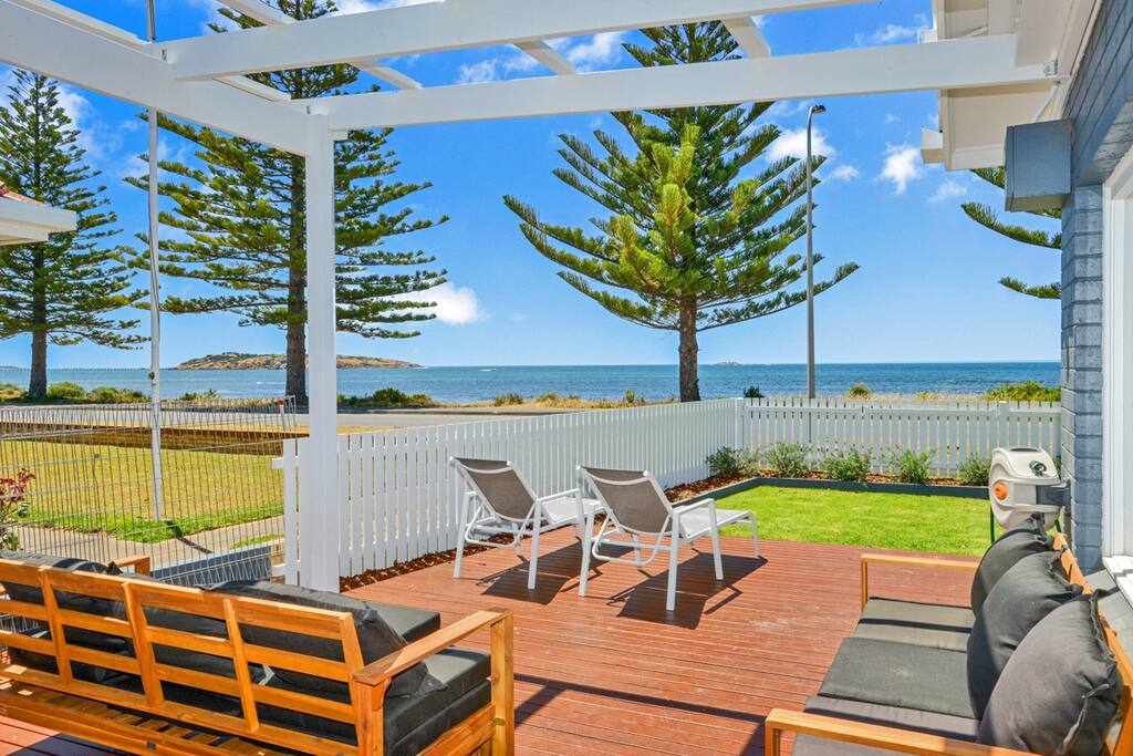 Bei der Ankunft kannst du dich auf der großen Terrasse mit Meerblick entspannen, während du ein Glas Wein oder einen Kaffee trinkst. Ein Haus, das neu eingerichtet ist, mit unbegrenztem WLAN für deinen Komfort und offenem Wohnzimmer. Viel Platz im Hinterhof für die Kinder zum Spielen und Parkplätze Nur einen Katzensprung entfernt vom lokalen Strand. Coles und Aldi sind nur die Straße hinauf, und die Stadt Victor ist nur 5 Autominuten von lokalen Cafés und Restaurants entfernt . Middleton ist eine 10-minütige Fahrt entfernt, ebenso wie Horseshoe Bay.