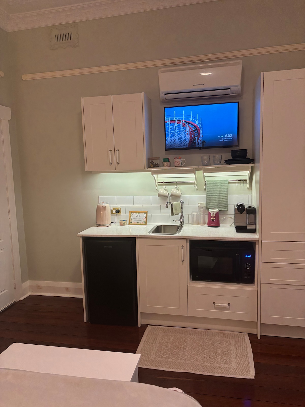 Auf der Außenseite befindet sich ein malerisches Ferienhaus, drinnen ist es Hollywood! Willkommen in unserer privaten Oase, sicher, komfortabel und nah am Geschehen. Nur einen kurzen Spaziergang von den öffentlichen Verkehrsmitteln, dem Como Hotel und netten Cafés entfernt. Oder ein paar Minuten in einem Uber und du bist im Optus Stadium & Crown Casino, der belebten Café-Meile von Vic Park, Curtin Uni, Perth City, Swan River und Golfplatz. Unser Gästehaus ist komplett eigenständig mit separatem Bad / Waschküche. Die Küche ist komplett mit modernen Geräten ausgestattet.
