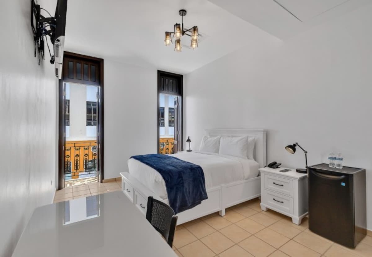 Willkommen in unserem stilvollen urbanen Refugium im Herzen von San Juan. Dieses moderne Hotelzimmer ist sowohl auf Komfort als auch auf Raffinesse ausgelegt und bietet eine nahtlose Mischung aus modernem Design und herzlicher Gastfreundschaft. Unser Hotelzimmer bietet eine malerische Kulisse, die deinem Aufenthalt einen Hauch von Magie verleiht. Erlebe den Komfort mit unserer Plüsch-Bettwäsche, hochwertigen Laken und sorgfältig kuratierten Möbeln. Bleibe mit High-Speed-WLAN in Verbindung und sieh dir deine Lieblingssendungen oder -filme auf dem Smart-TV an.