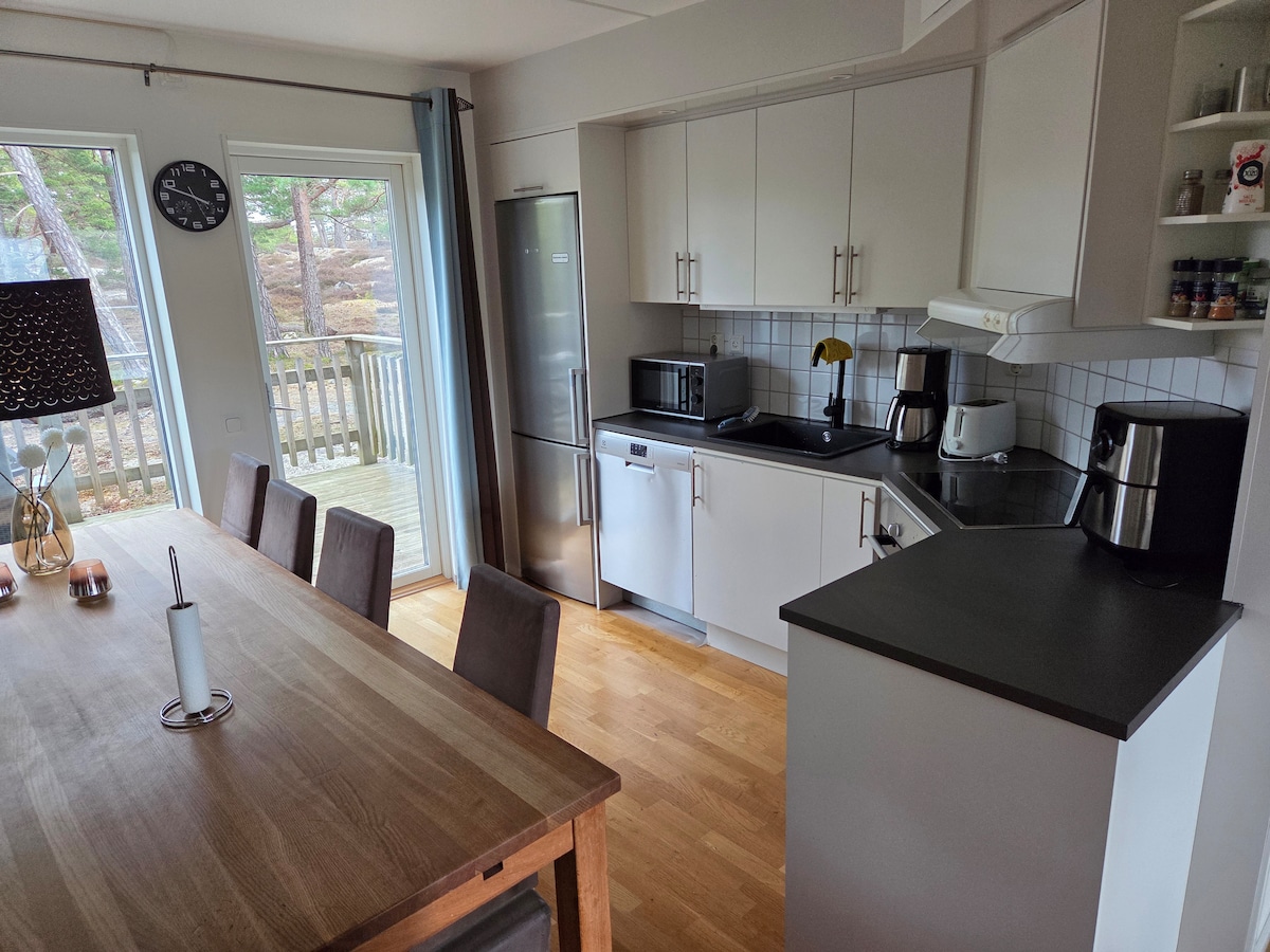 Cozy Guesthouse. Free parking. Sea access, 2 levels, close to Kragerø center. Bakstebua is a guesthouse that has been used as a bakery. It has private access and a small path down to the sea. Here you can use our private spot to swim and relax. On the top floor there is an apartment with a modern kitchen, shower and toilet. There is a full size bed, and a small loft where 2 children can sleep. On the ground floor, with separate access, there is a simple kitchen, bathroom and sofa-bed.