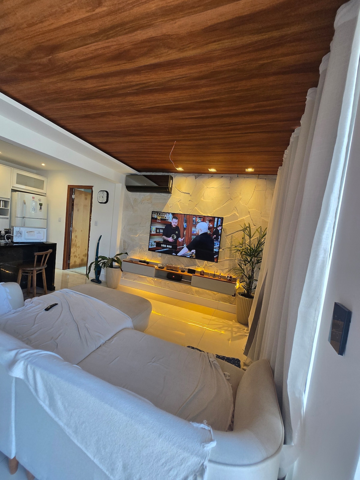 Cobertura Mar de Almirante ist eine Wohnung in der edlen Gegend von Vitória, mit einfachem Zugang zum Strand (mit Blick auf den Strand von Guarderia), der Komfort und Ruhe bietet. In diesem Zusammenhang umfasst das Gelände ein wenig Natur in jedem Zimmer, mit einer biophilen Dekoration im rustikalen Stil und einigen ethnischen Fußabdrücken, die beim Bewegen zwischen Räumen wahrgenommen werden. Die Unterkunft hat ein sehr offenes Konzept, mit einer großen Küche, die in das Esszimmer und das Wohnzimmer integriert ist.