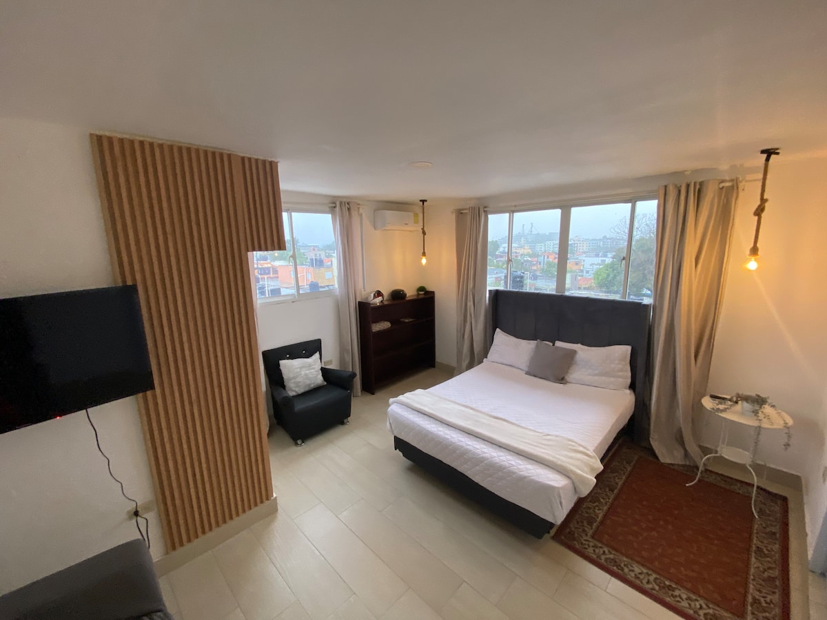 Apto studio pequeño Disfruta de la sencillez de este alojamiento tranquilo, el apartamento es perfecto para quedarse por varias noches y visitar lugares increíbles. Kitchenette equipada WiFi y Smart TV Espacios modernos y acogedores Una hábitación Un baño Parqueo frente al apartamento sin costo Reserva tu día perfecto AHORA