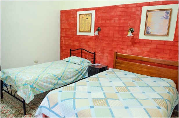 Wir bieten unseren Gästen ein Kolonialhaus in hervorragenden Bedingungen und sie werden in der Lage sein, Flur, Wohnzimmer, zweites Wohnzimmer, Schlafzimmer mit Insidebadezimmer, Flur und Terrasse zu genießen. Wir haben zwei Zimmer, mit eigenem Bad. Zimmer #1 verfügt über ein Doppelbett und ein Einzelbett sowie das Zimmer #2 über zwei Einzelbetten, beide Zimmer verfügen über Klimaanlage, Ventilator, Fenster, 110 V- und 220 V-Steckdosen, kaltes und warmes Wasser rund um die Uhr, Haartrockner, Minibar mit Getränken. Wir erlauben Haustiere und haben Einrichtungen für Kinder.