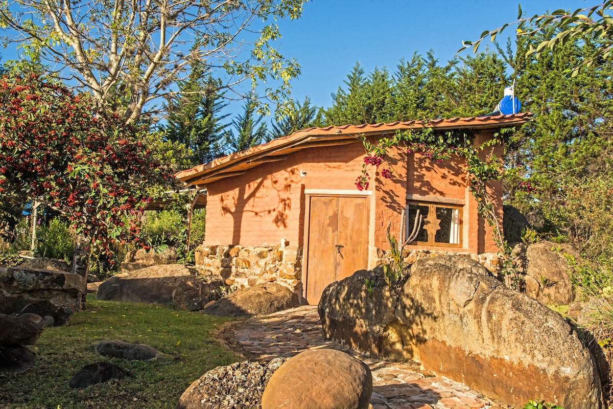 Maloka Tierra ist der jüngste Bau unserer Unterkunft in Montecatini, einem Anwesen auf dem Berg von Villa de Leyva mit vier Malokas, die von den Elementen der Natur inspiriert sind. Diese Maloka ehrt die Kraft und Stabilität des Erdelements und lädt uns ein, Wurzeln zu schlagen und uns wieder mit dem Wesentlichen zu verbinden. Seine kreisförmige Architektur ohne Wände ist von den Malokas der Vorfahren inspiriert und fördert die Einheit und das Teilen im Einklang mit anderen und der Umwelt.
