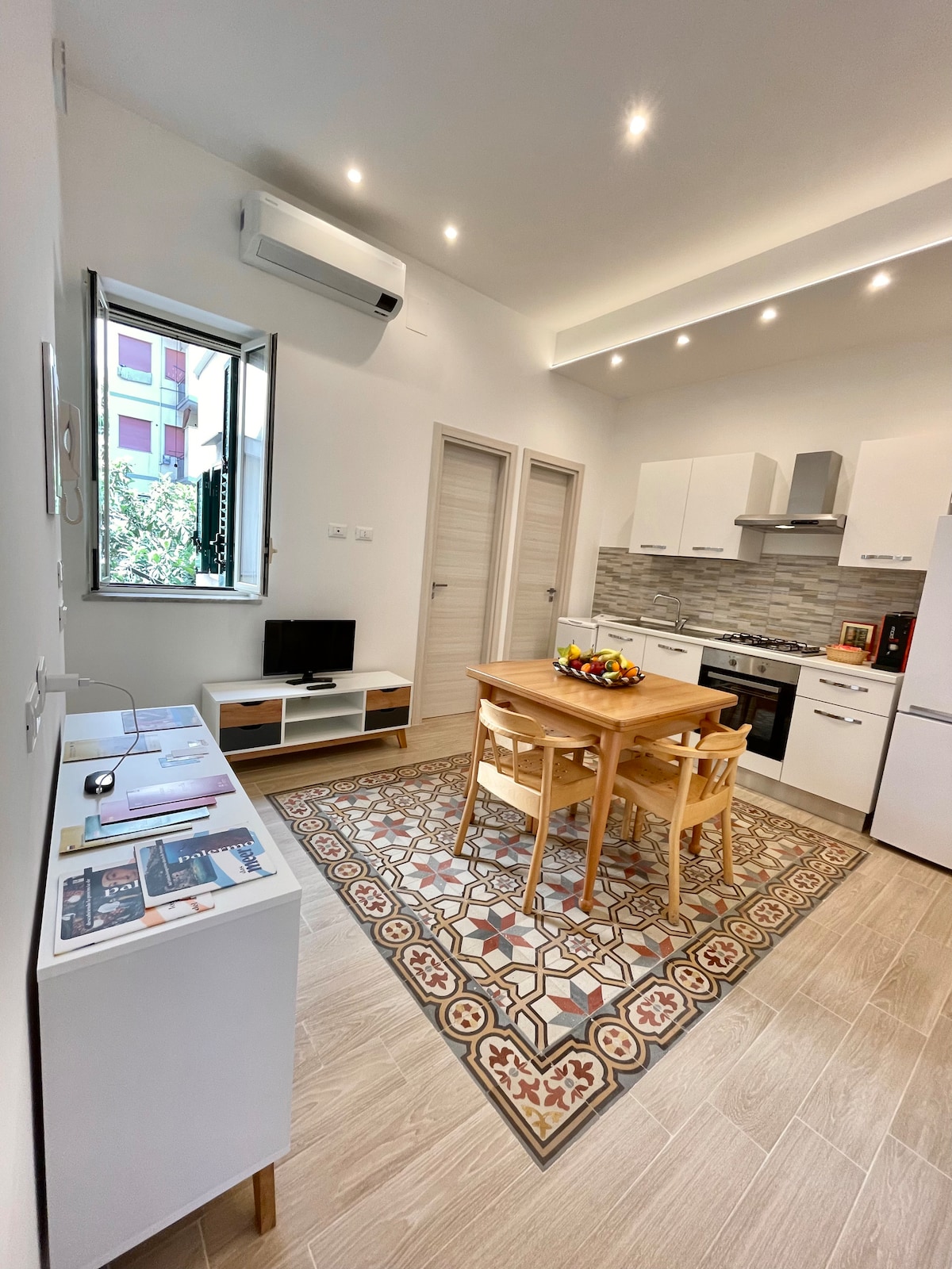 Super zentral gelegene Wohnung an der Spitze eines Palazzo im Herzen von Kalsa, dem trendigsten Viertel im historischen Zentrum von Palermo. Wenn du es schaffst, die 4. Etage der steilen Treppe hinaufzusteigen (kein Aufzug), lohnt es sich! Die Wohnung wurde von mir, einem römischen Architekten, der sich nach 10 Jahren Praxis in London entschieden hat, nach Palermo zu ziehen und hier ein Studio zu eröffnen, komplett renoviert. Die Wohnung verfügt über 2 schöne Terrassen, 1 Schlafzimmer, 1 großes Küchen-Wohnzimmer, ein Arbeitszimmer und 1 Badezimmer.