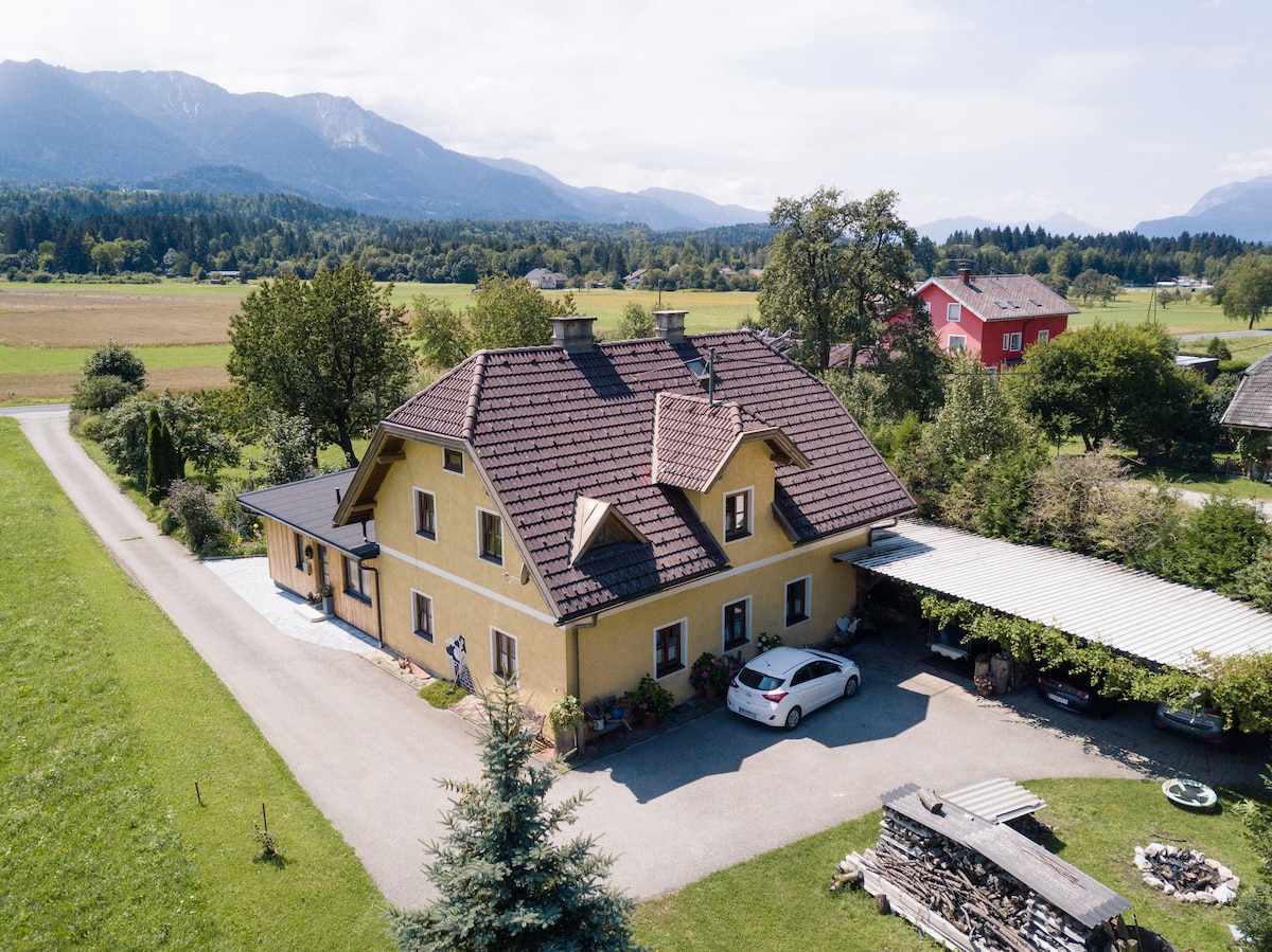 Wunderschöne Ferienwohnung, frisch renoviert, sonnige Ruheoase mitten in der Natur, 5 min. Fußweg zum Wald, perfekt für Wanderer und Radfahrer. Skigebiete in der Umgebung, 10 min. Autoweg zum Supermarkt, 15 min. bis nach Villach Stadt. Parkettböden mit Fußbodenheizung, Kaminofen, Badewanne und Dusche, WLAN, Parkplatz direkt neben der Wohnungstüre mit E-Ladestation. Beheizter Abstellraum für Sportgeräte, Terrasse und Gartenbereich mit Feuerstellen.