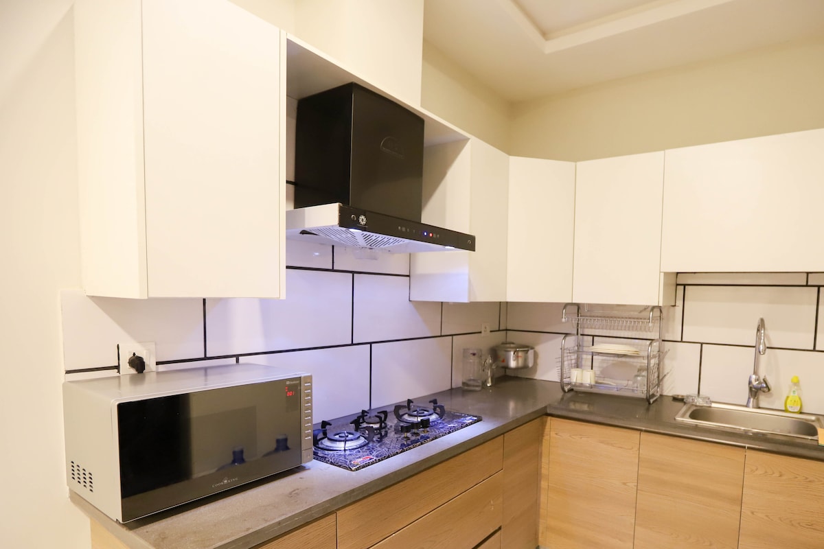 Willkommen in The Enclave Escape, einem modernen 1BHK, das für Komfort und Stil im Herzen von Bahria Enclave Islamabad entworfen wurde. Genieße eine Unterhaltungswand mit Netflix, Prime und Youtube, einen gemütlichen Essbereich und eine voll ausgestattete Küche. Das klimatisierte Schlafzimmer verspricht einen erholsamen Schlaf, während zwei Balkone einen atemberaubenden Blick auf Margalla bieten. In einem ruhigen, sicheren Familiengebäude mit kostenlosen Parkplätzen, Park, Cafés, Lebensmittelgeschäften, Zoo, Voliere und der Großen Moschee nur wenige Schritte entfernt gelegen - dein perfekter Rückzugsort erwartet dich.