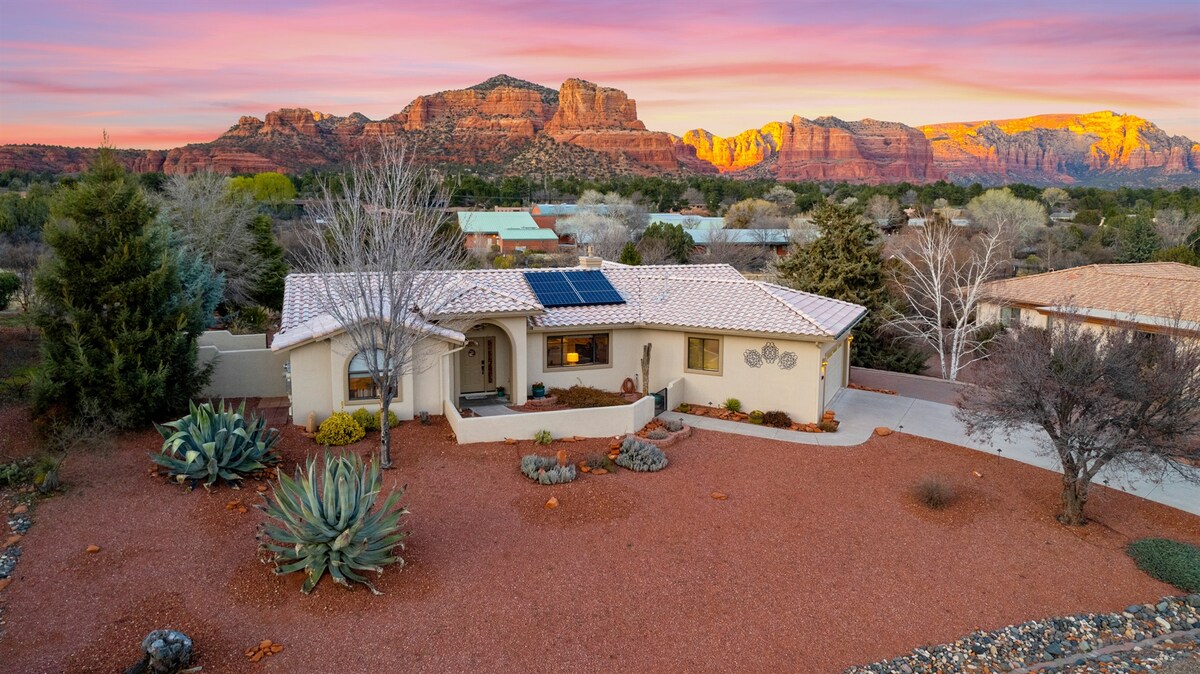Deine Desert Rose Oasis erwartet dich mit ungehinderter Aussicht auf die roten Felsen und Privatsphäre von diesem maßgeschneiderten Haus in einer ruhigen Sackgasse im begehrten Chapel-Bereich von Sedona. Die Architektur dieses Hauses, entworfen von John Kamas, wurde gebaut, um den Blick auf die Berge von jedem Zimmer aus zu maximieren. Dieses Haus ist der perfekte Rückzugsort, der nur wenige Gehminuten von erstklassigen Wanderwegen zum Erkunden, Wandern und Radfahren entfernt ist und große Unterhaltungsräume im Innen- und Außenbereich bietet.